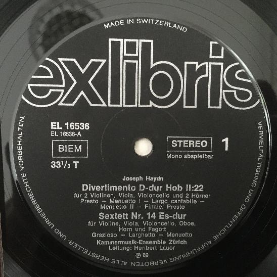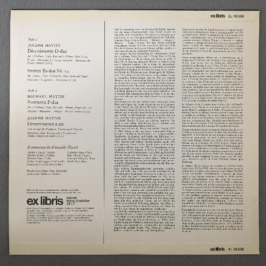 M279 J. & M. Haydn Funny Serenade Chamber Ensemble Zürich Ex Libris EL 16 536 St