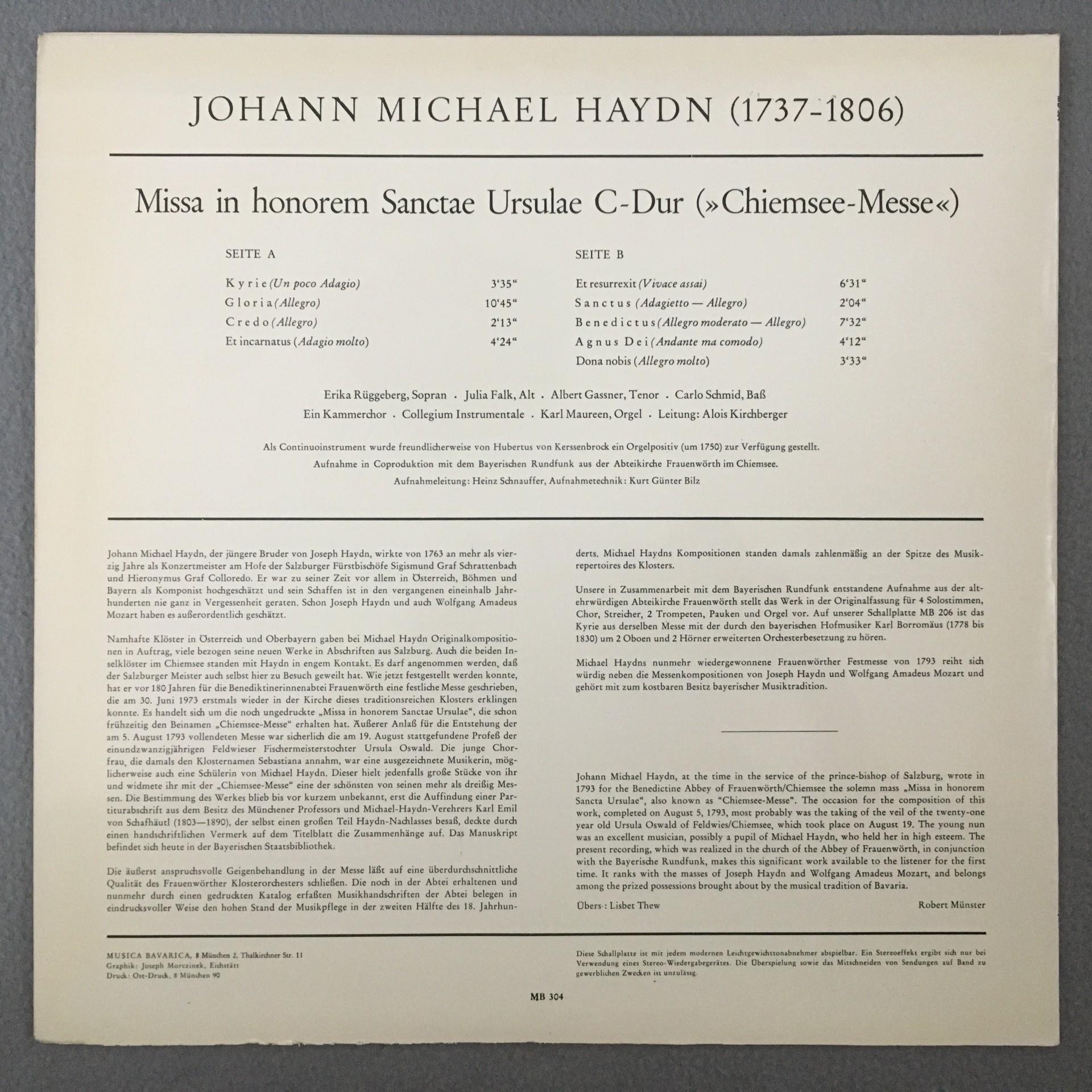 M298 Haydn Missa in Honorem Sanctae Ursulae Maureen Musica Bavarica MB 304 St
