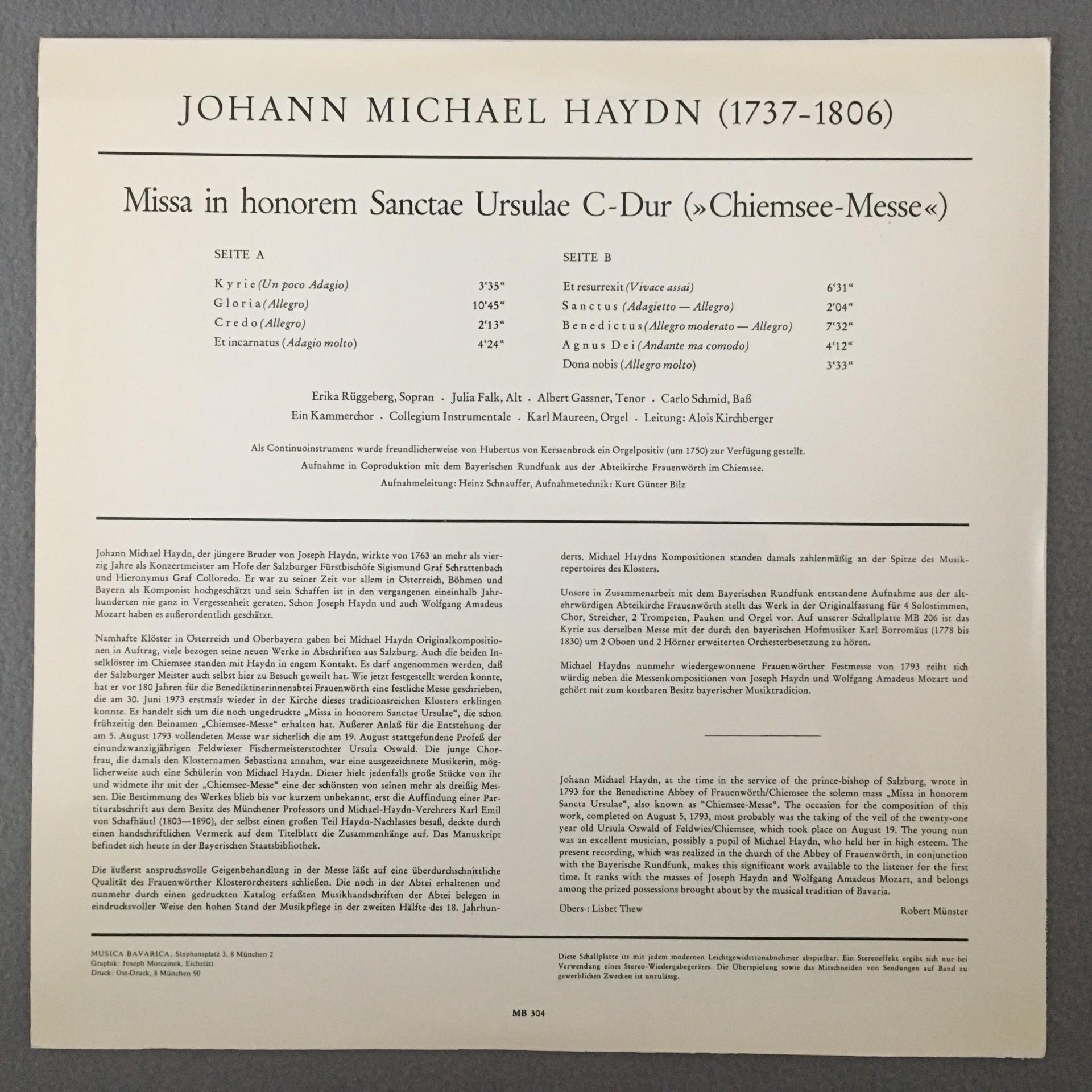 M299 Haydn Missa in Honorem Sanctae Ursulae Maureen Musica Bavarica MB 304 St