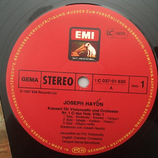 M307 Haydn Cello Concertos du Pre Barbirolli Barenboim EMI 1C 037-01 630 Stereo
