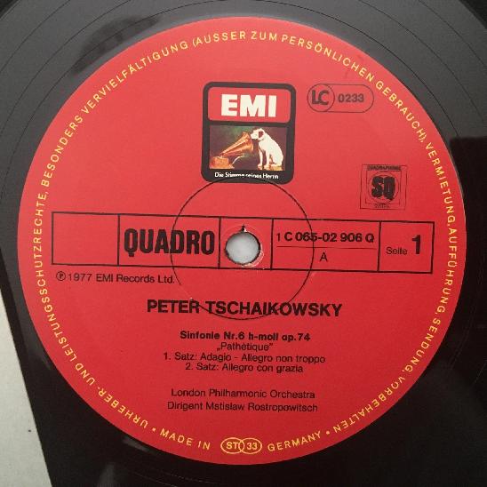 M327 Tchaikovsky Symphony No.6 Rostropovich LPO EMI 1C 065-02 906 Q Quadro
