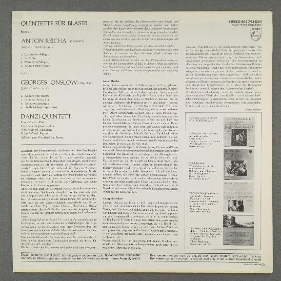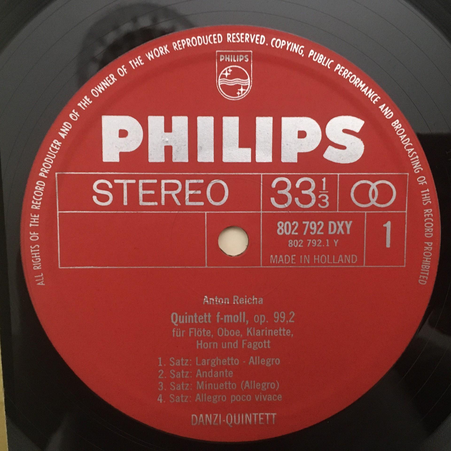 M330 Reicha Onslow Quintets Danzi Quintet Philips 802 792 DXY Stereo