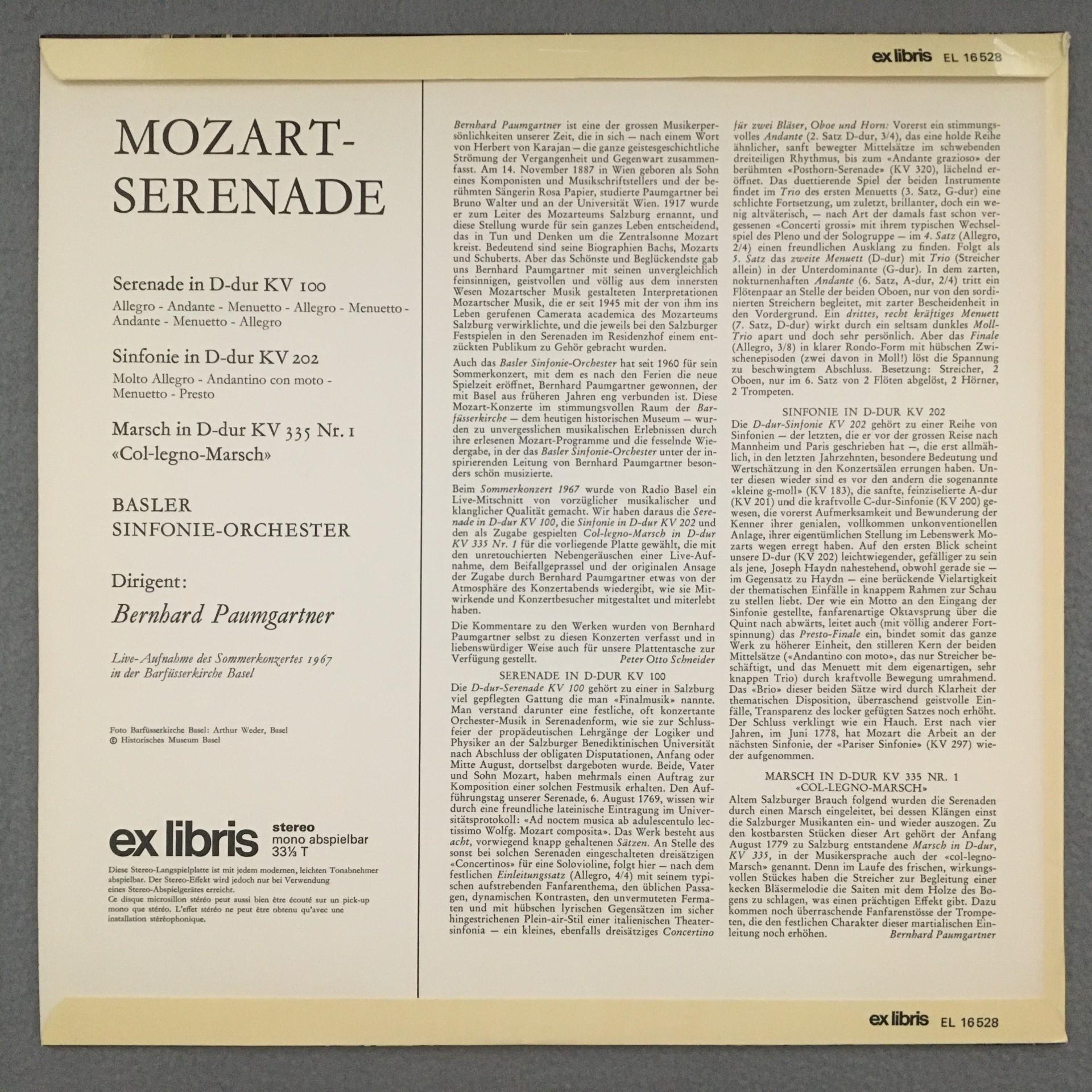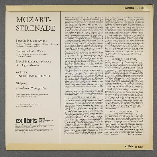 M335 Mozart Serenade Symphony Paumgartner Ex Libris EL 16 528 Stereo