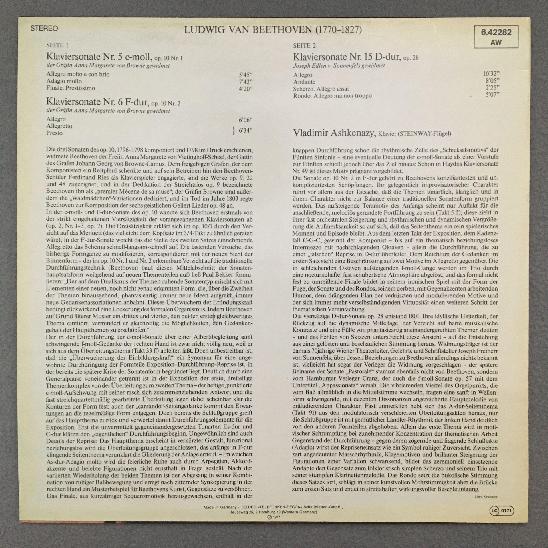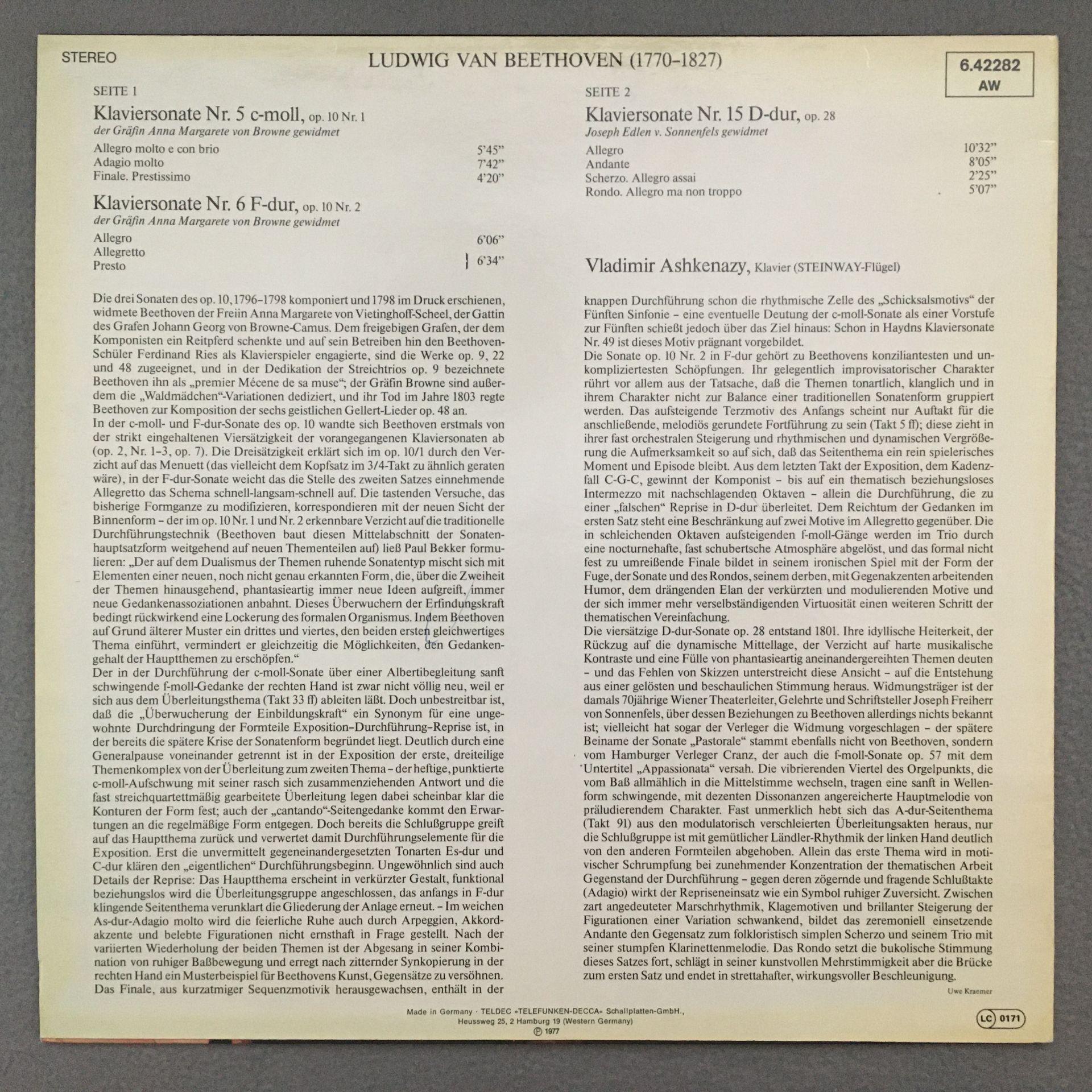 M347 Beethoven Piano Sonatas Ashkenazy DECCA 6.42282 AW Stereo