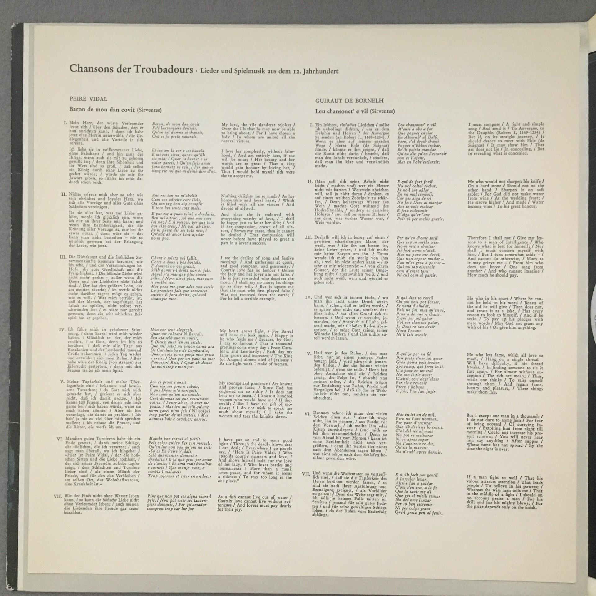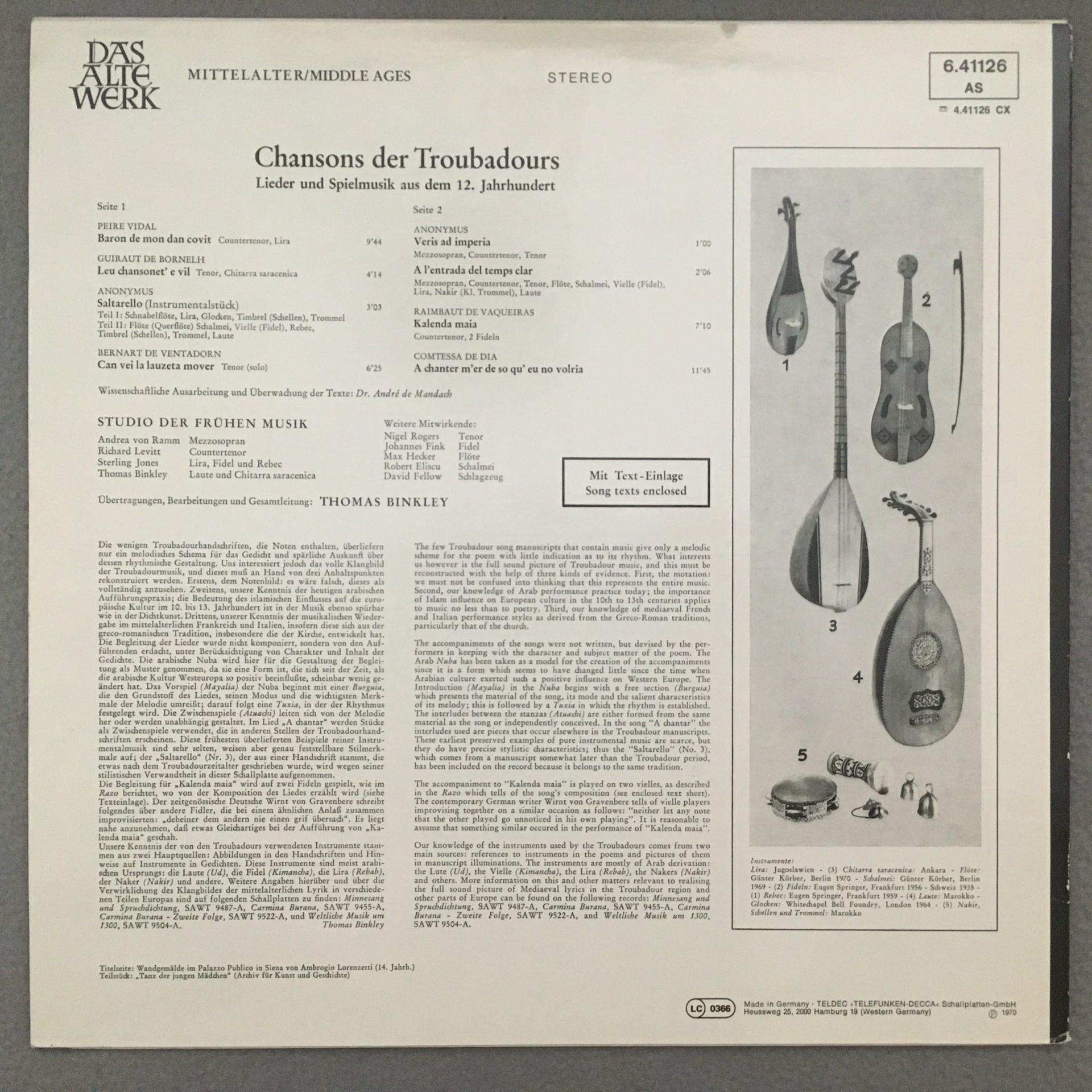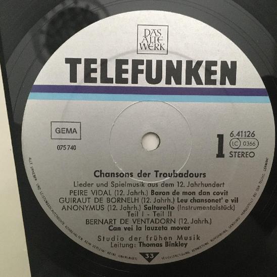 M351 Chansons der Troubadours Binkley Telefunken 6.41126 AS Stereo