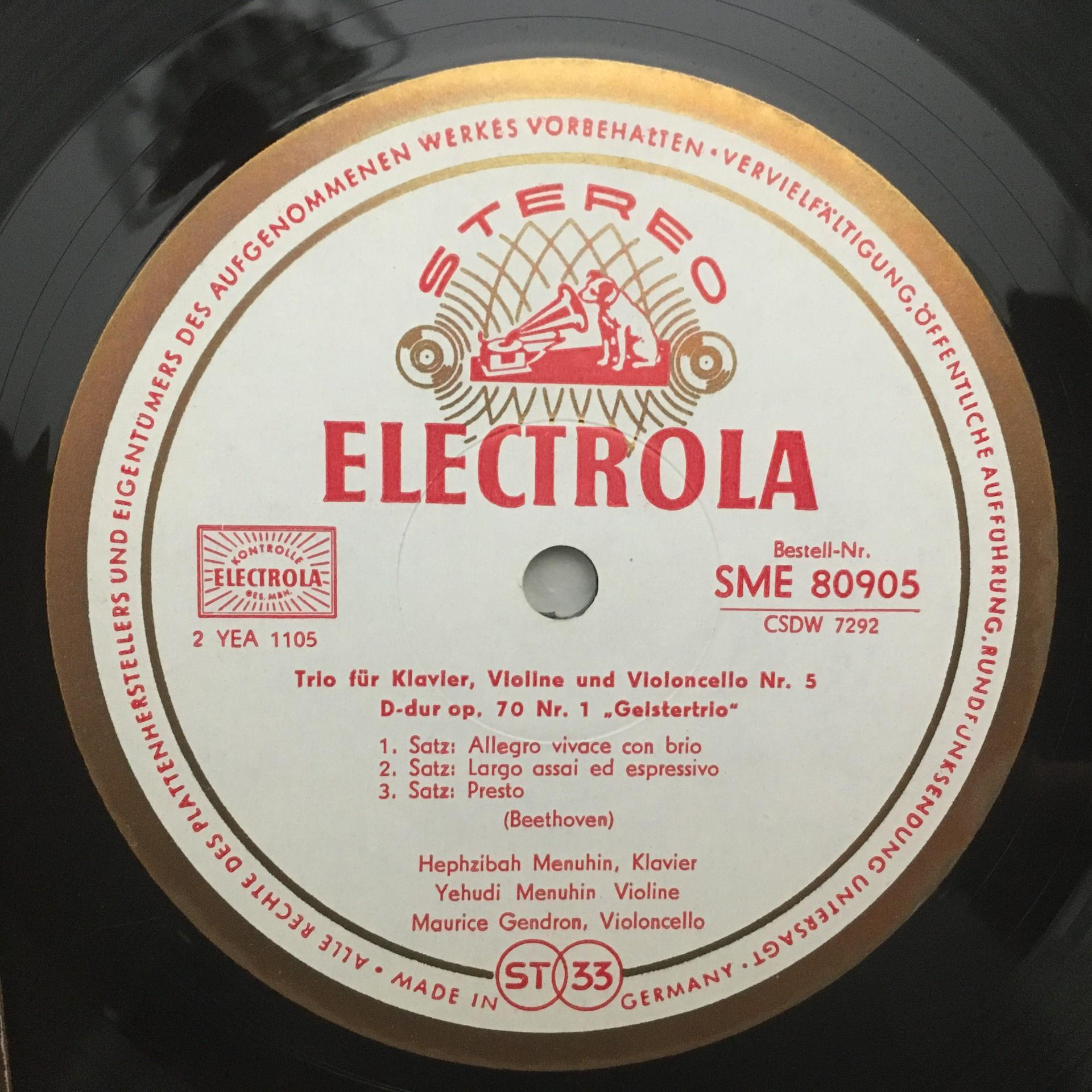 M352 Beethoven Piano Trios H. & Y. Menuhin Gendron Electrola w/g SME 80 905 Ster