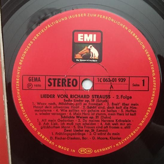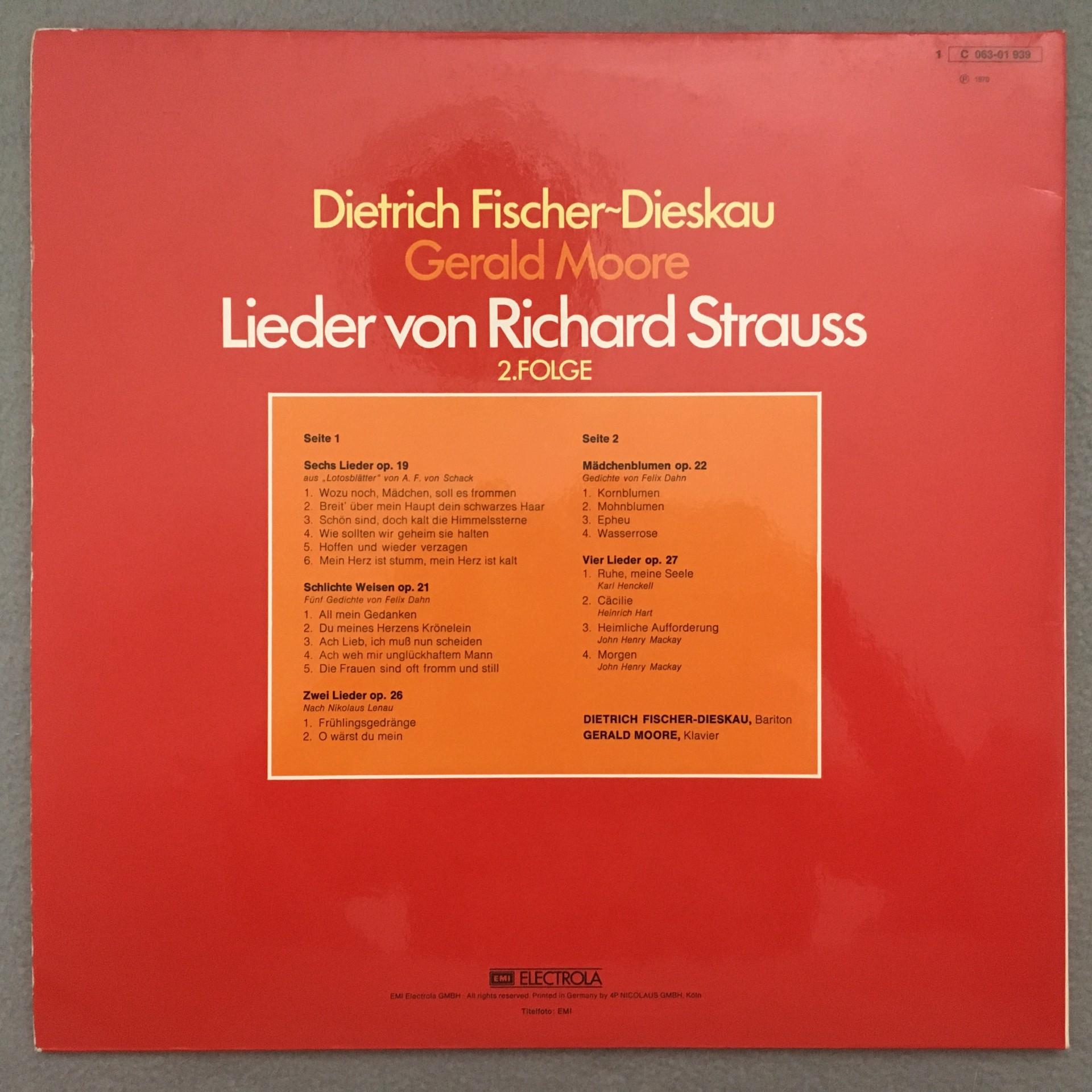 M354 R. Strauss Songs Vol.2 Fischer-Dieskau Moore Piano EMI 1C 063-01 939 Stereo