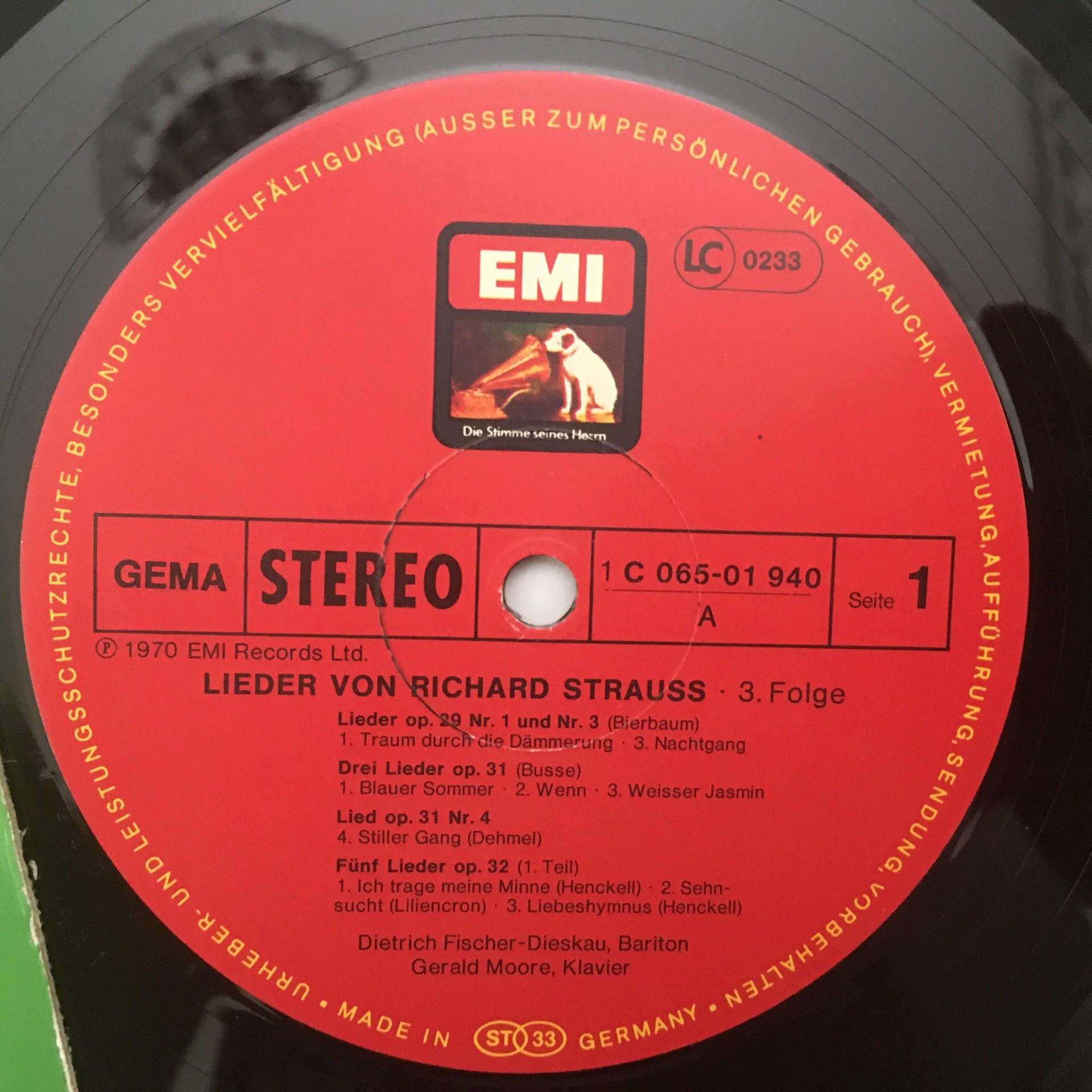 M363 R. Strauss Songs Fischer-Dieskau Moore Piano EMI 1C 065-01 940 Stereo