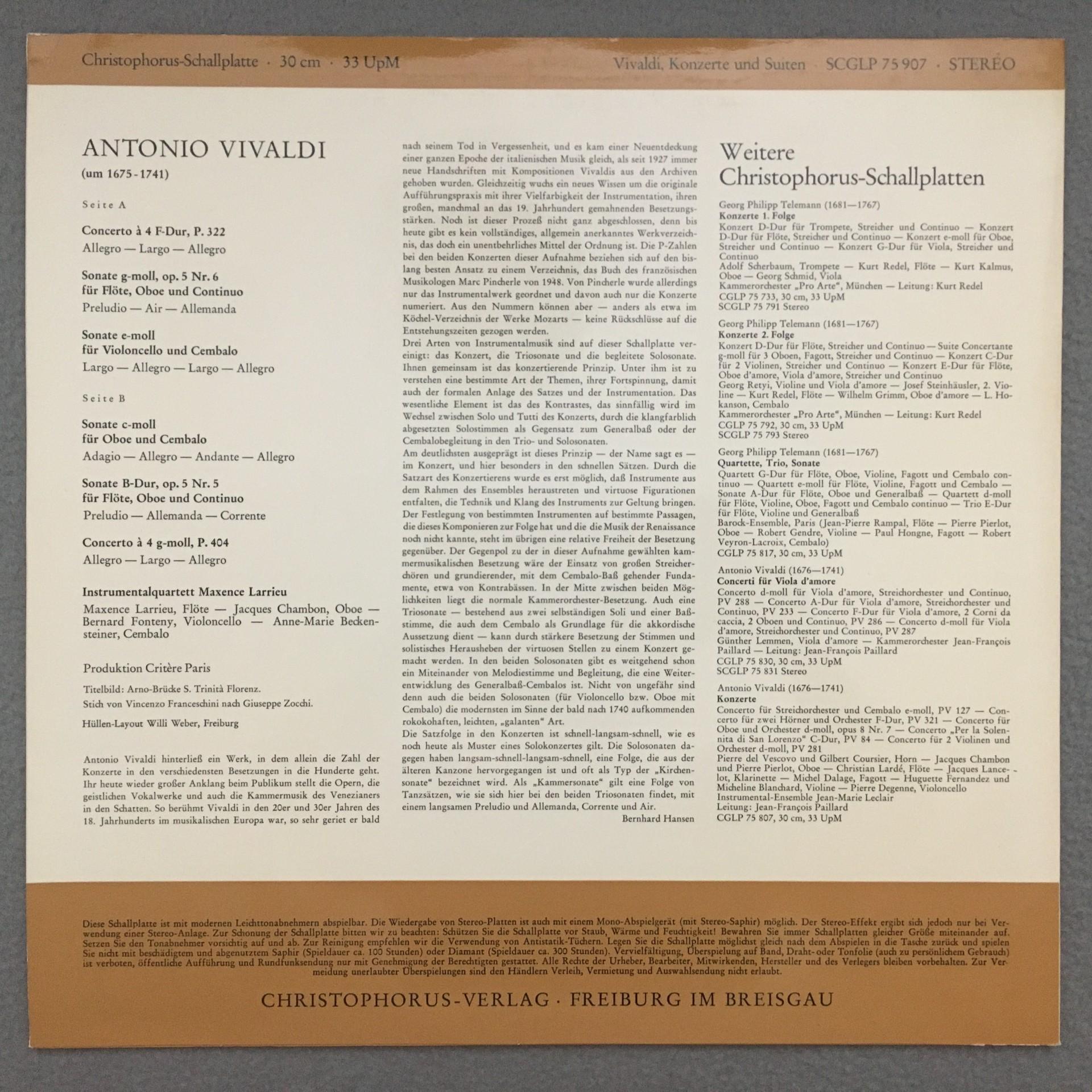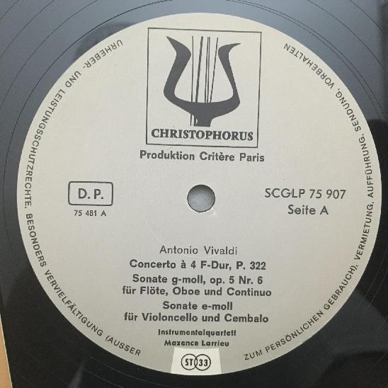 M380 Vivaldi Concertos & Sonatas Quartet Larrieu Christophorus SCGLP 75 907 Ster