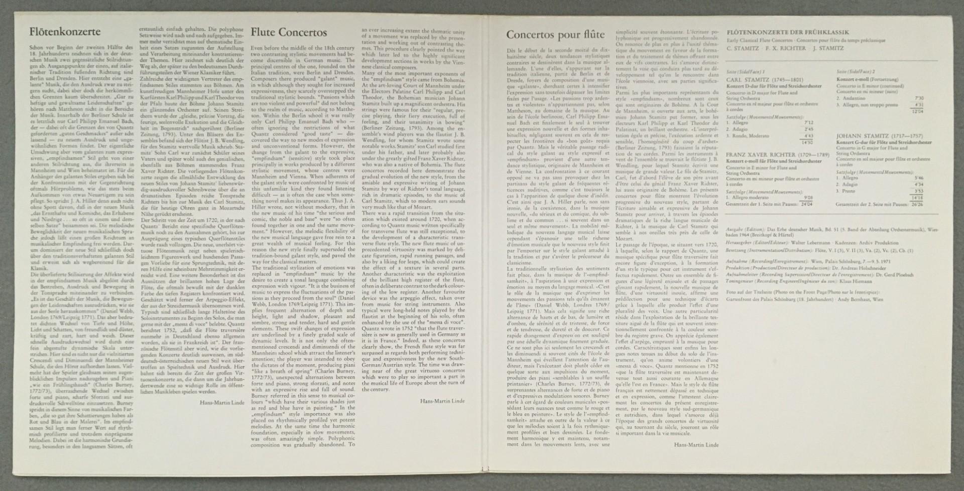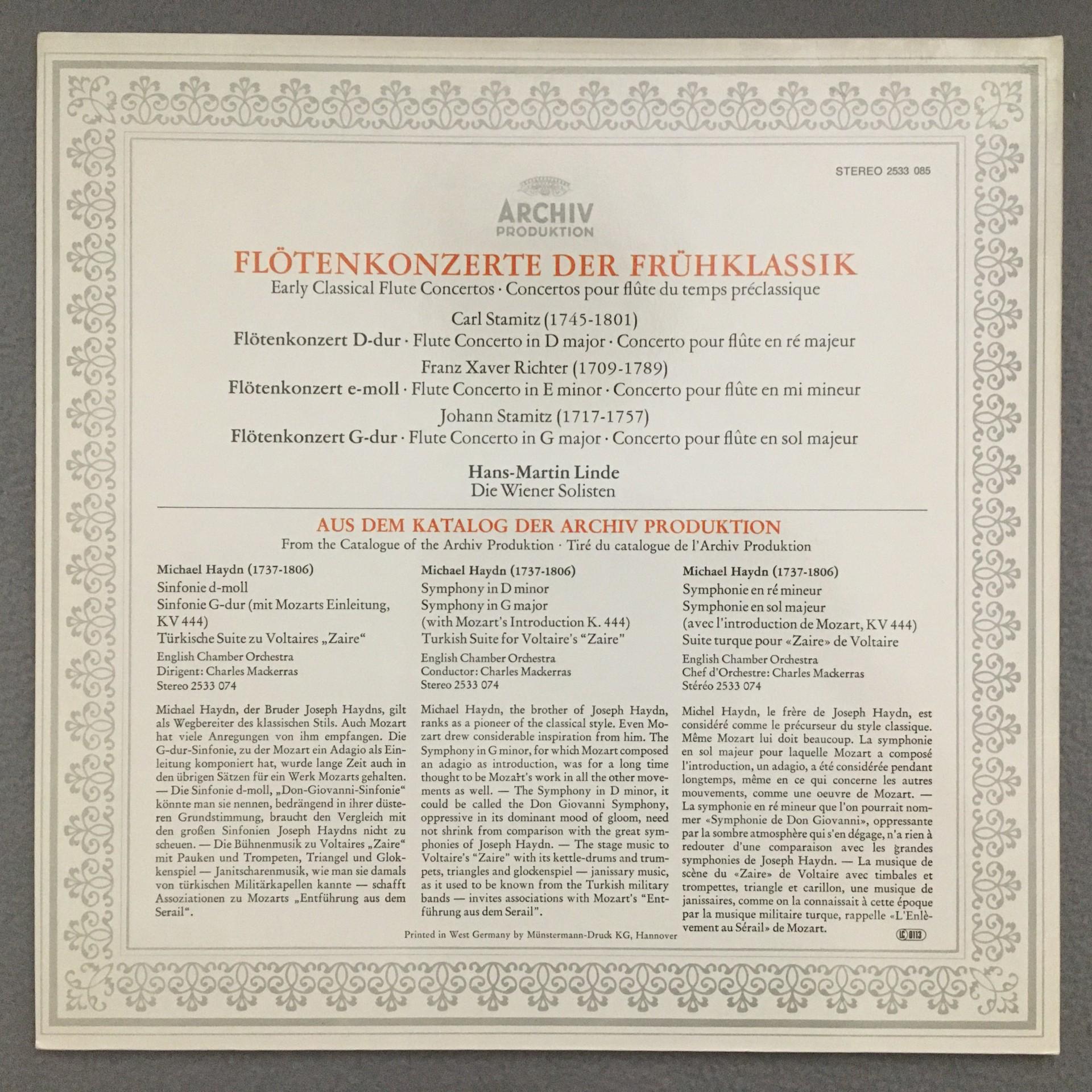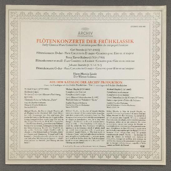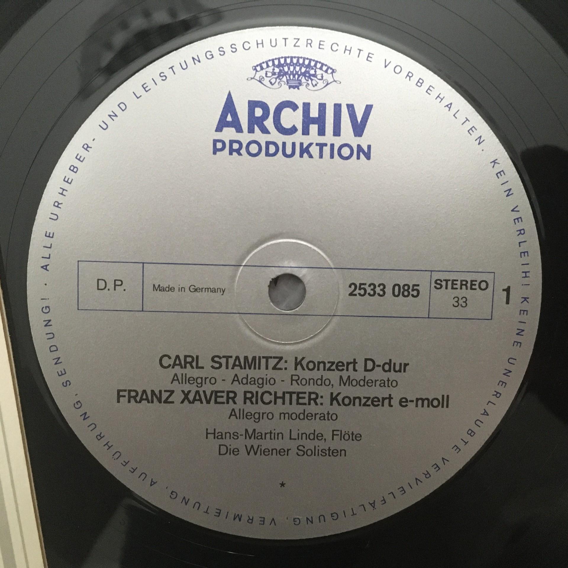 M391 Flute Concertos Stamitz Richter Linde Vienna Solists DGG Archiv 2533 085 St