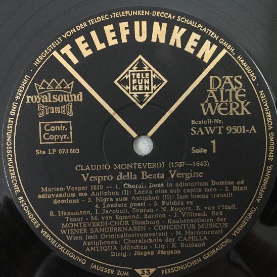 B696 Monteverdi Vespro della Beata Vergine Jürgens 2LP Telefunken SAWT 9501/02-A