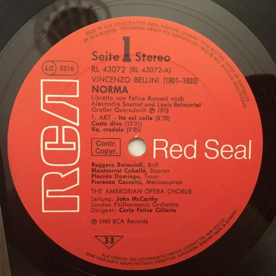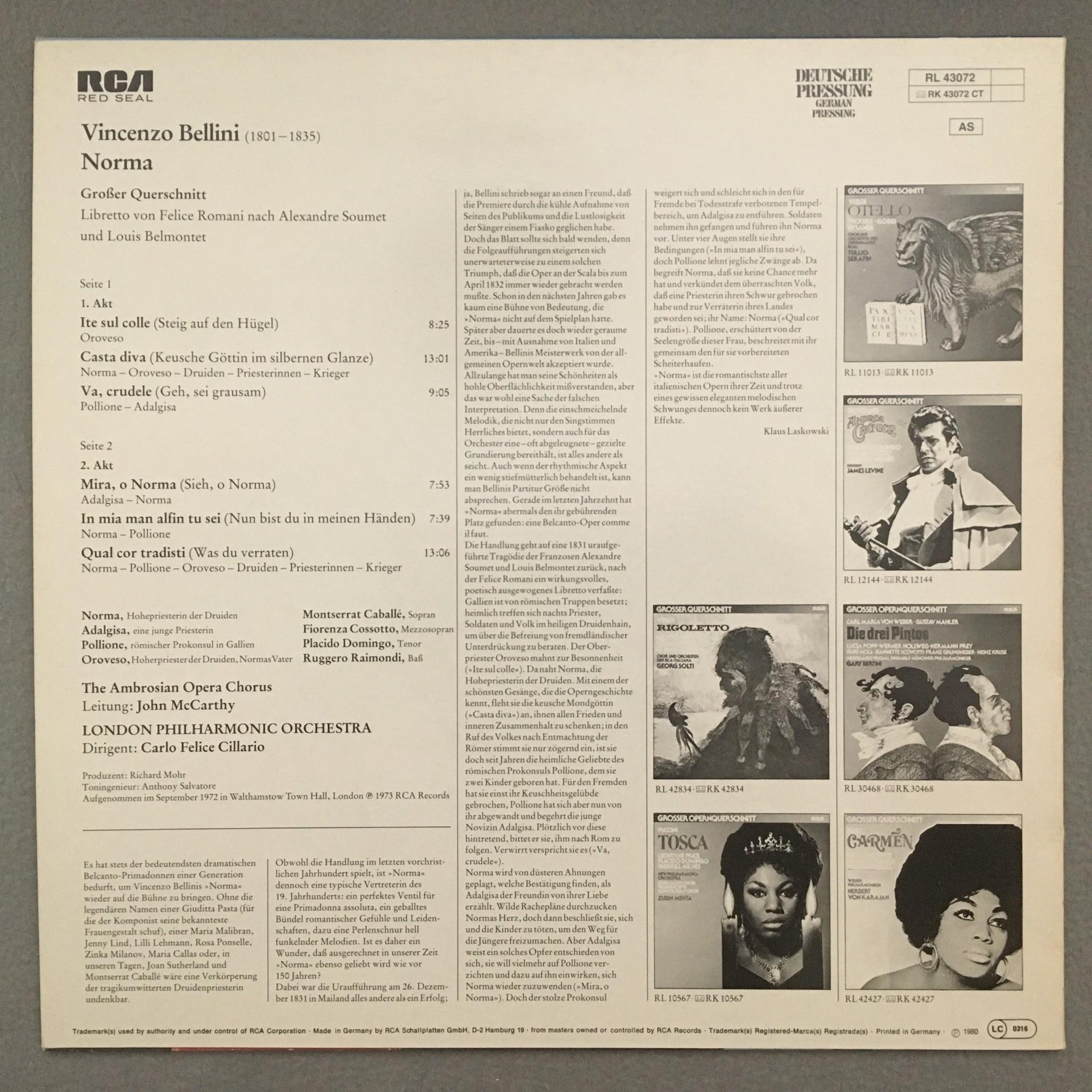 M399 Bellini Norma Caballe Domingo Cossotto Cillario RCA RL 43072 Stereo
