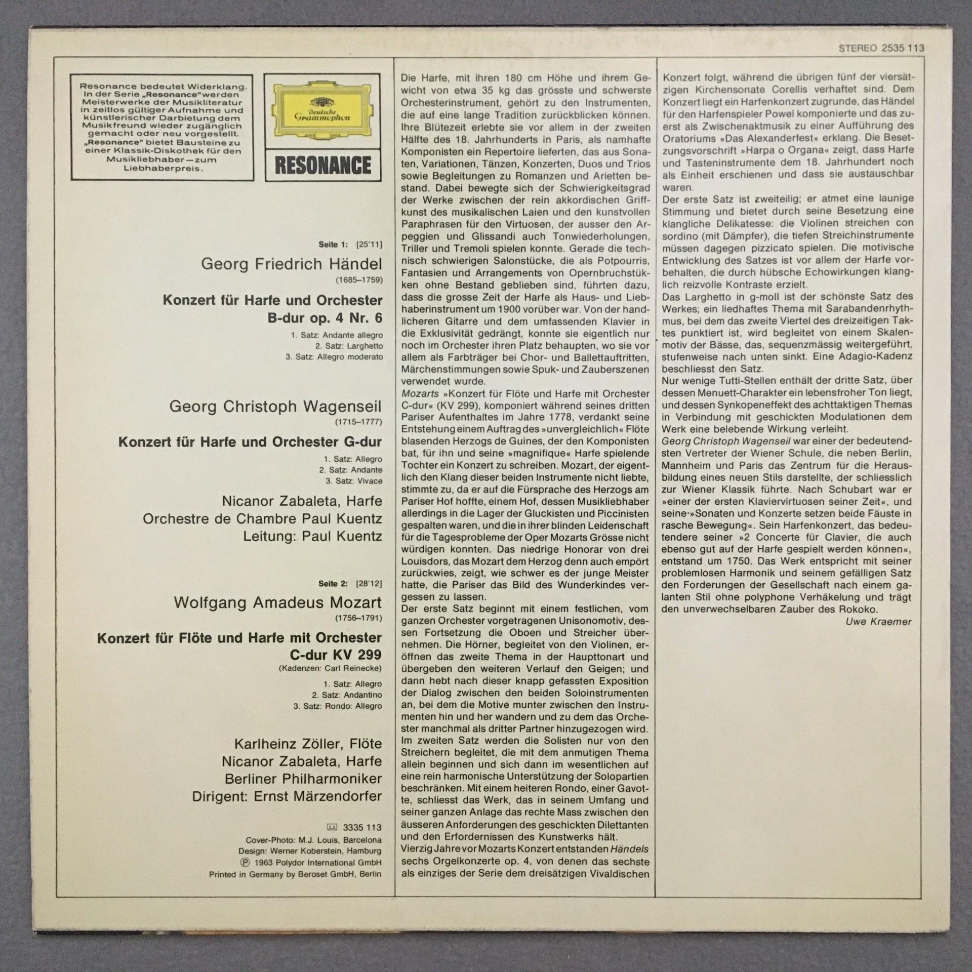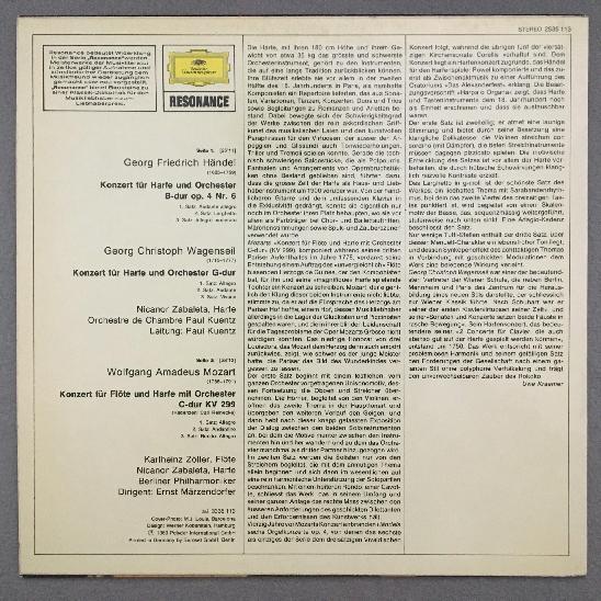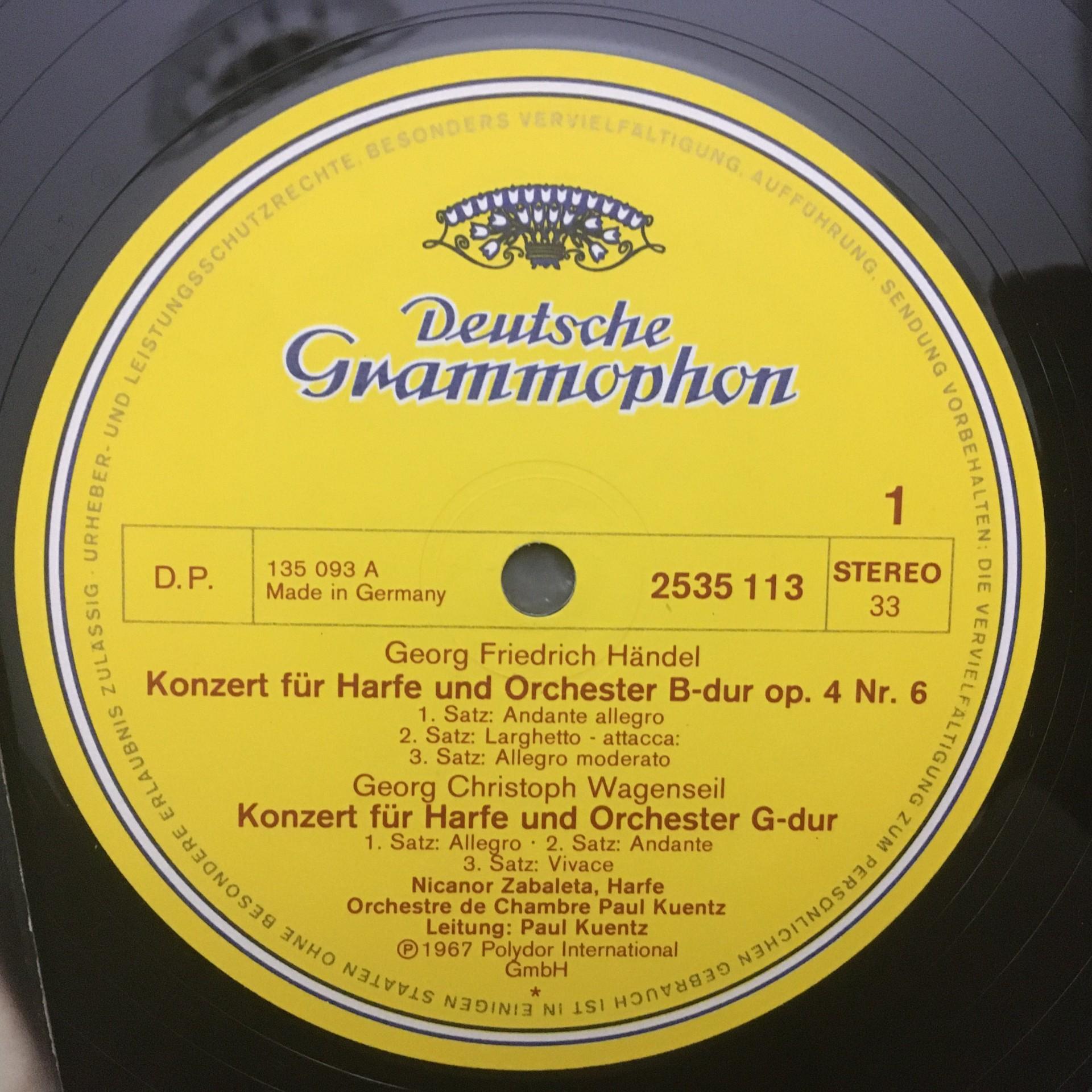 M402 Harp Concertos Zabaleta Handel Mozart Wagenseil DGG 2535 113 Stereo