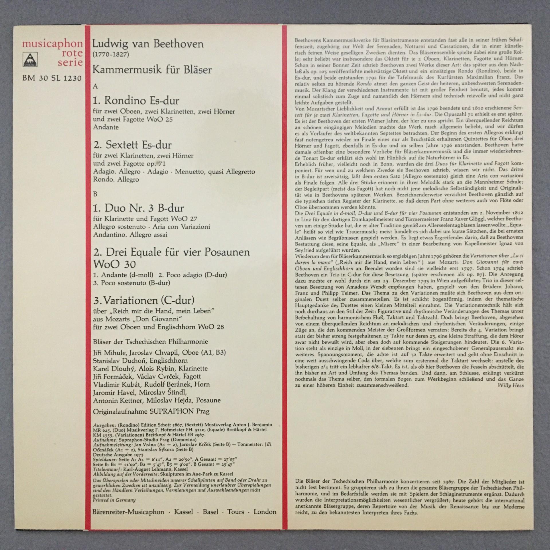 M405 Beethoven Chamber Music For Winds Musicaphon BM 30 SL 1230 Stereo