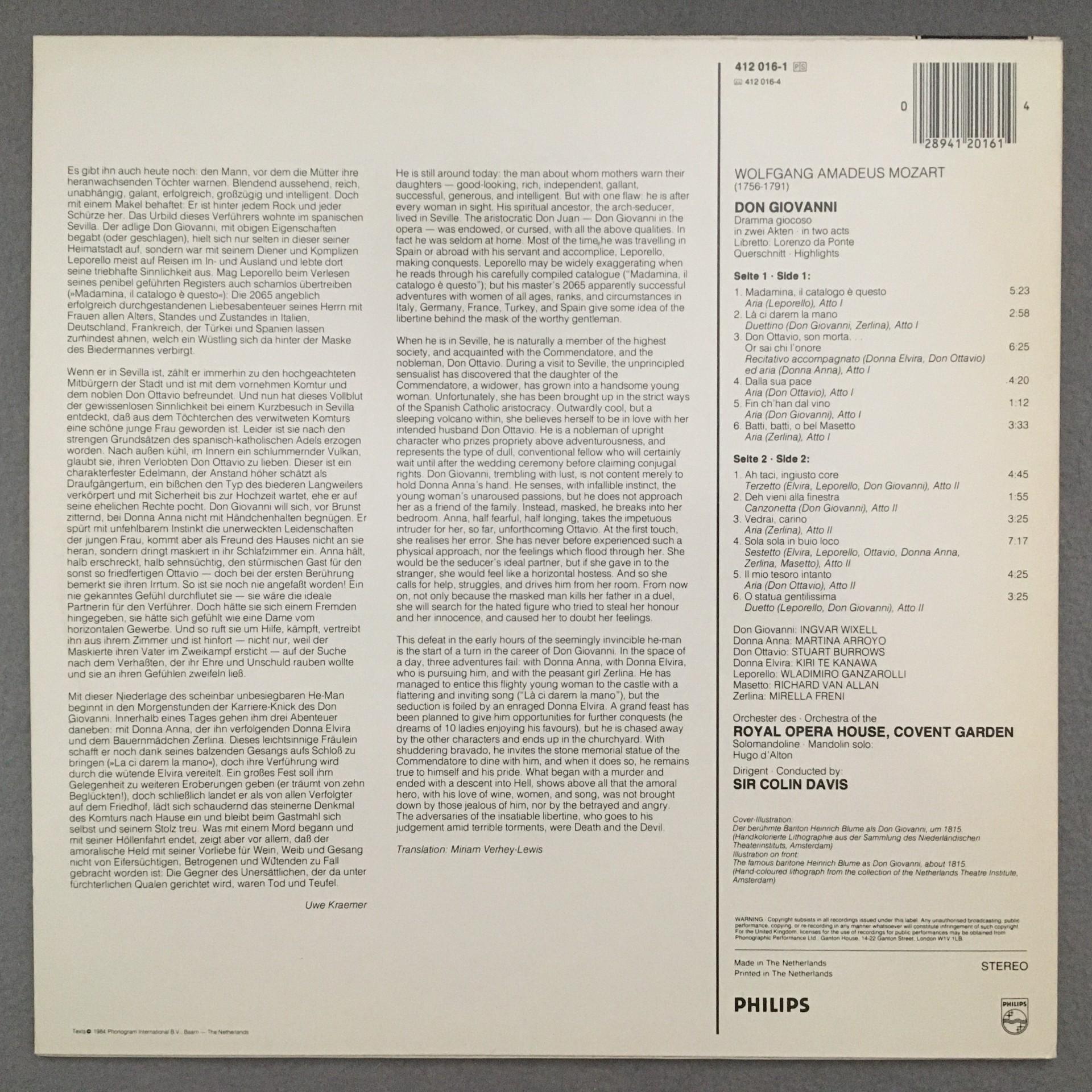 M411 Mozart Don Giovanni Te Kanawa Freni Davis Philips 412 016-1 Stereo