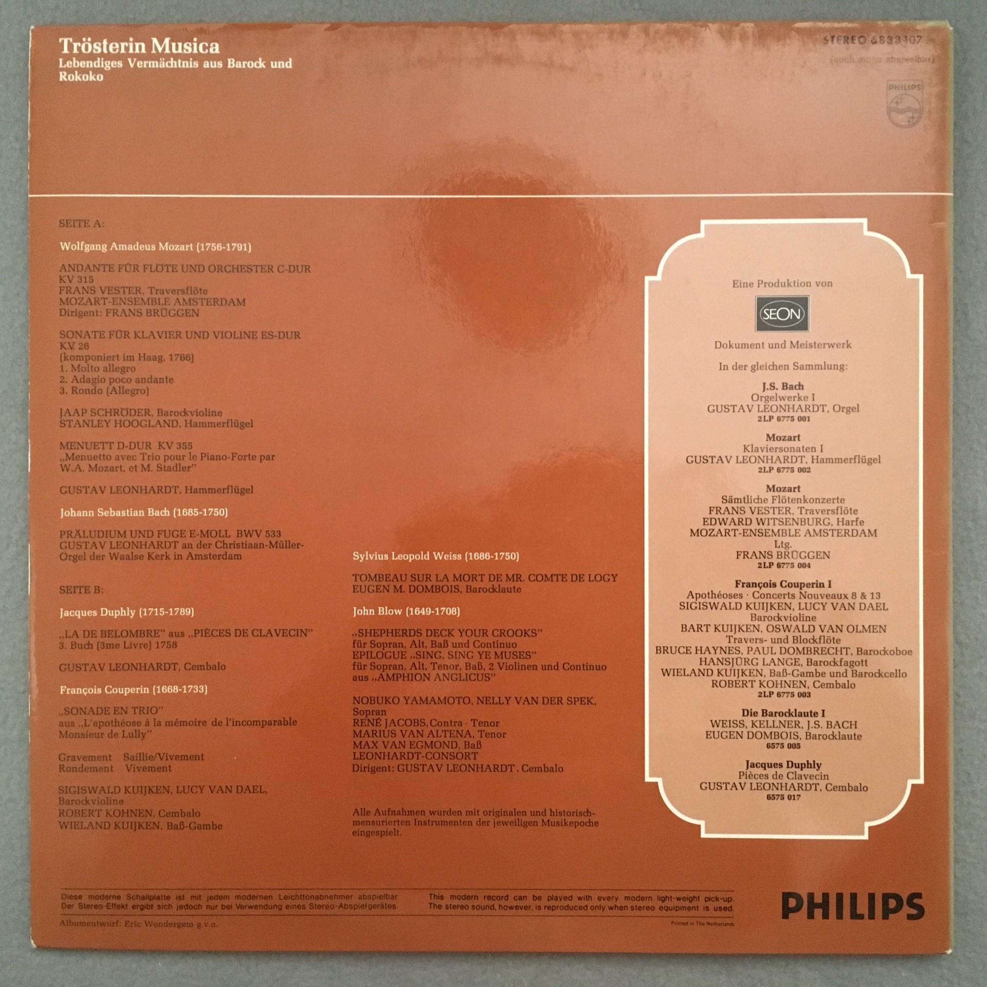 M414 Trösterin Musica Mozart Bach Couperin Leonhardt Brüggen Philips 6833 107 St