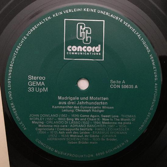 M429 Madrigale & Motetts Gymnasium Winsen Rödiger Concord CON 50635 Stereo