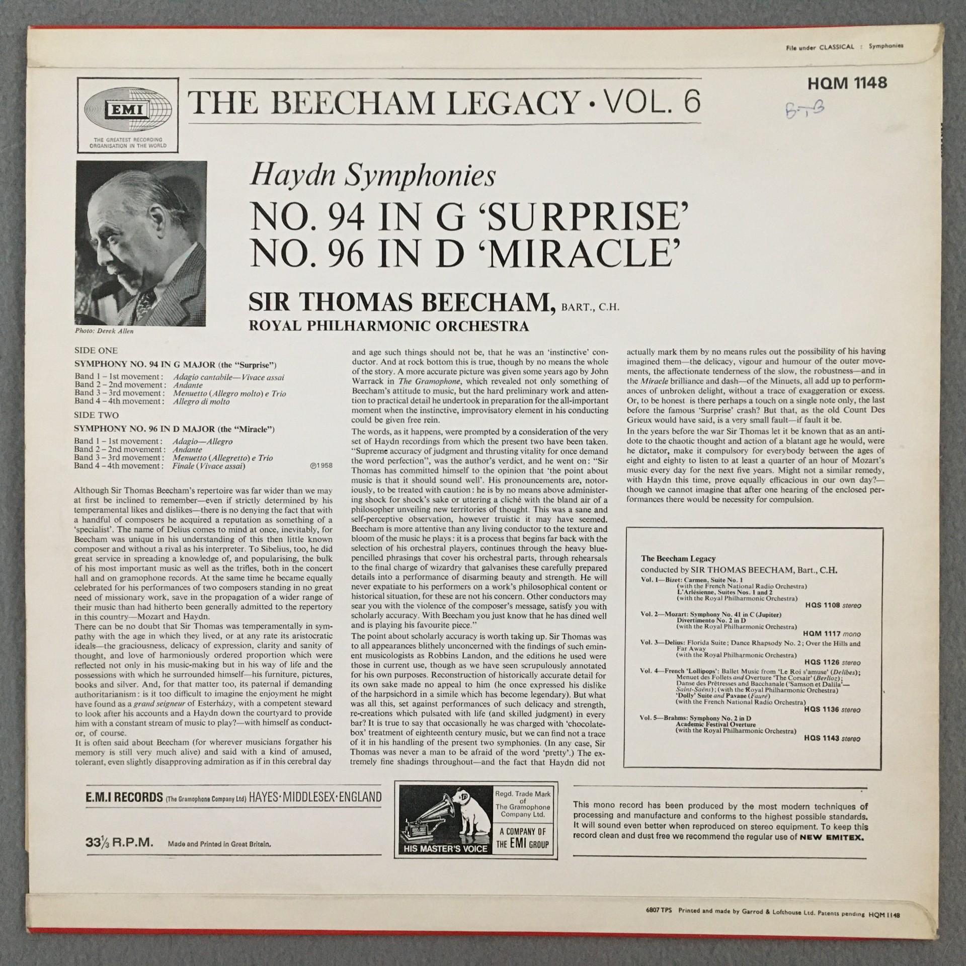 M457 Haydn Symphonies No.94 & No.96 Beecham EMI HQM 1148 Stereo