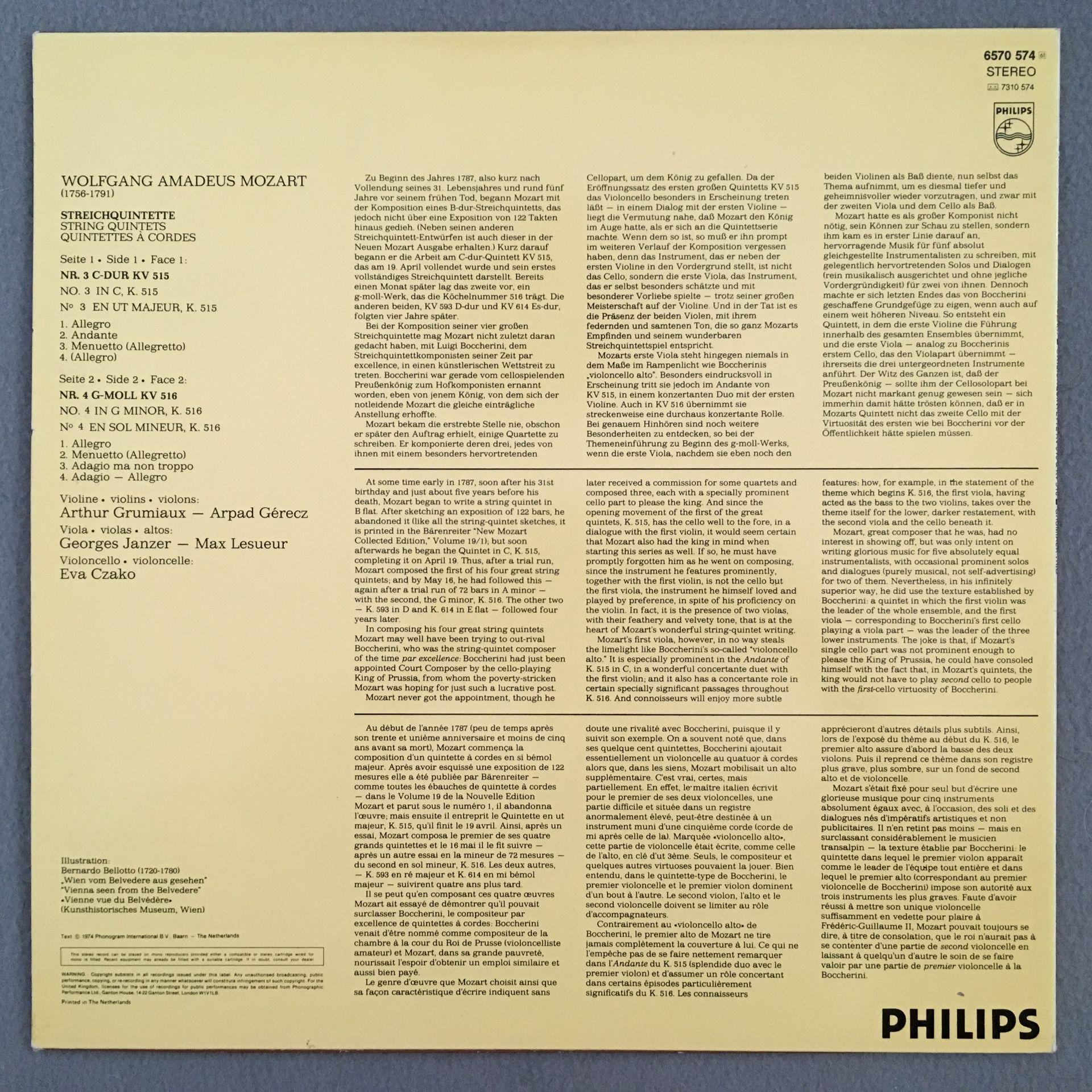 M462 Mozart String Quintets Grumiaux Trio Gerecz Lesueur Philips 6570 574 Stereo