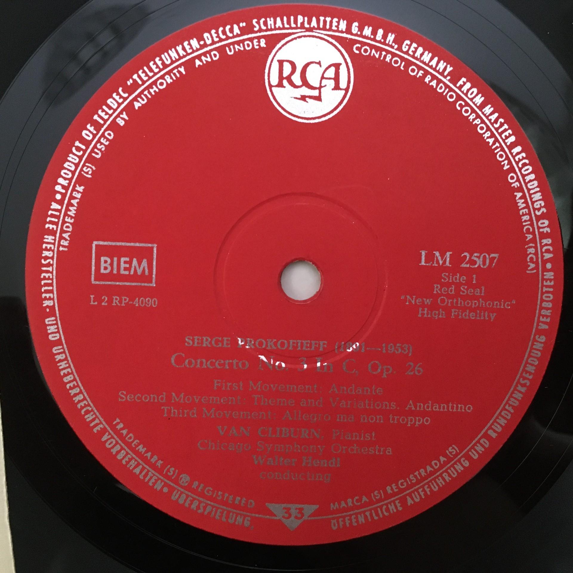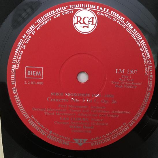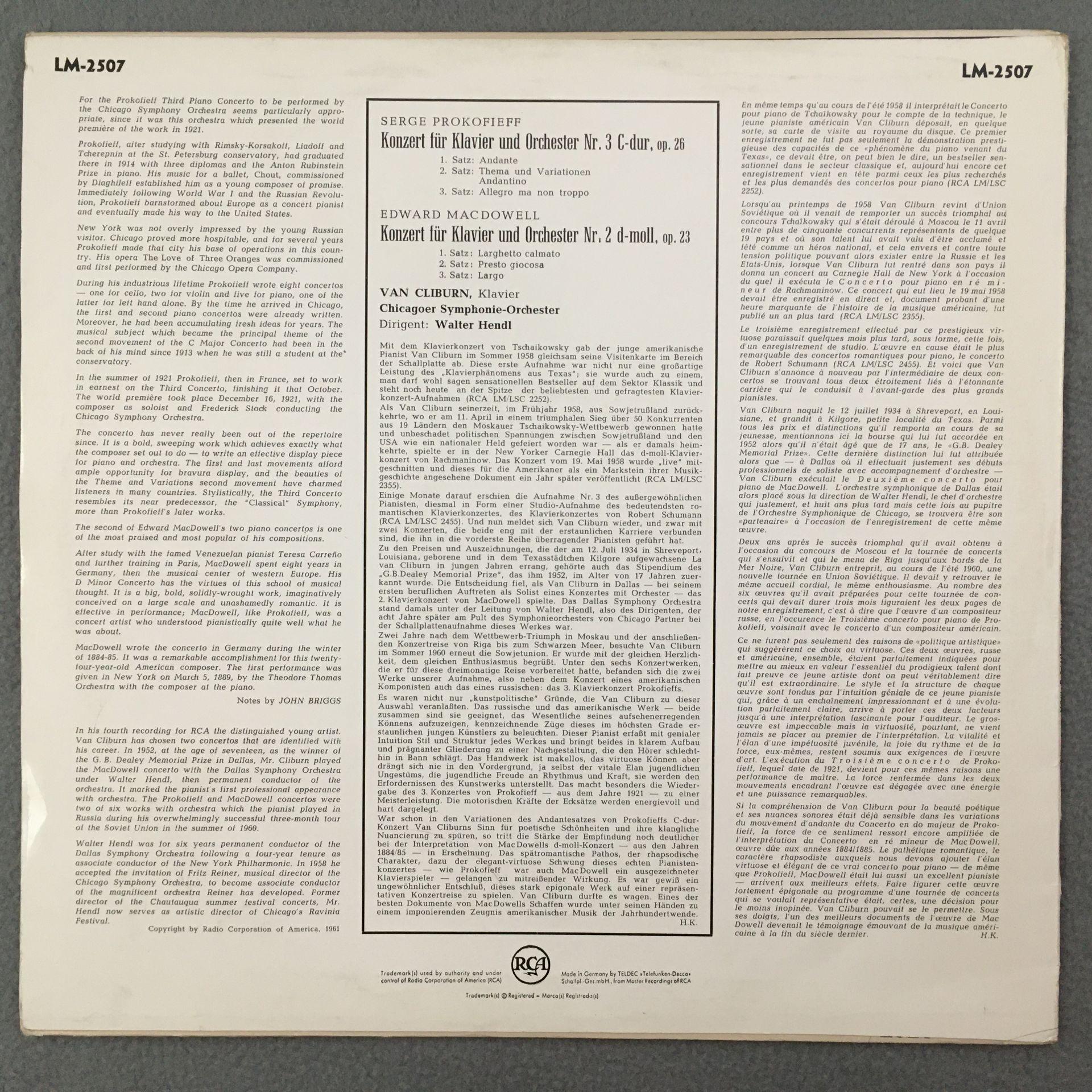 M478 Prokofiev MacDowell Concertos Van Cliburn Hendl RCA LM-2507