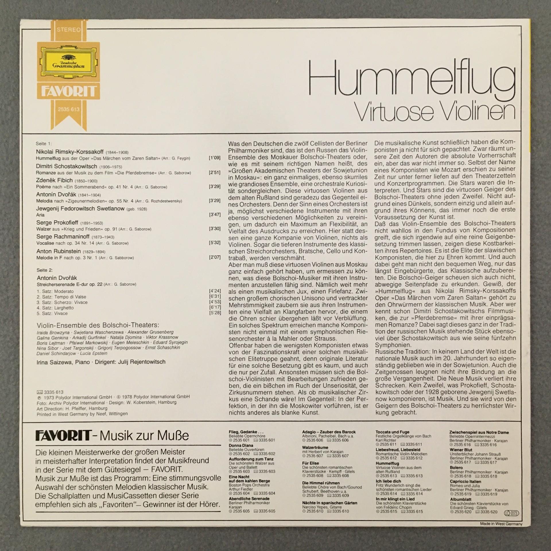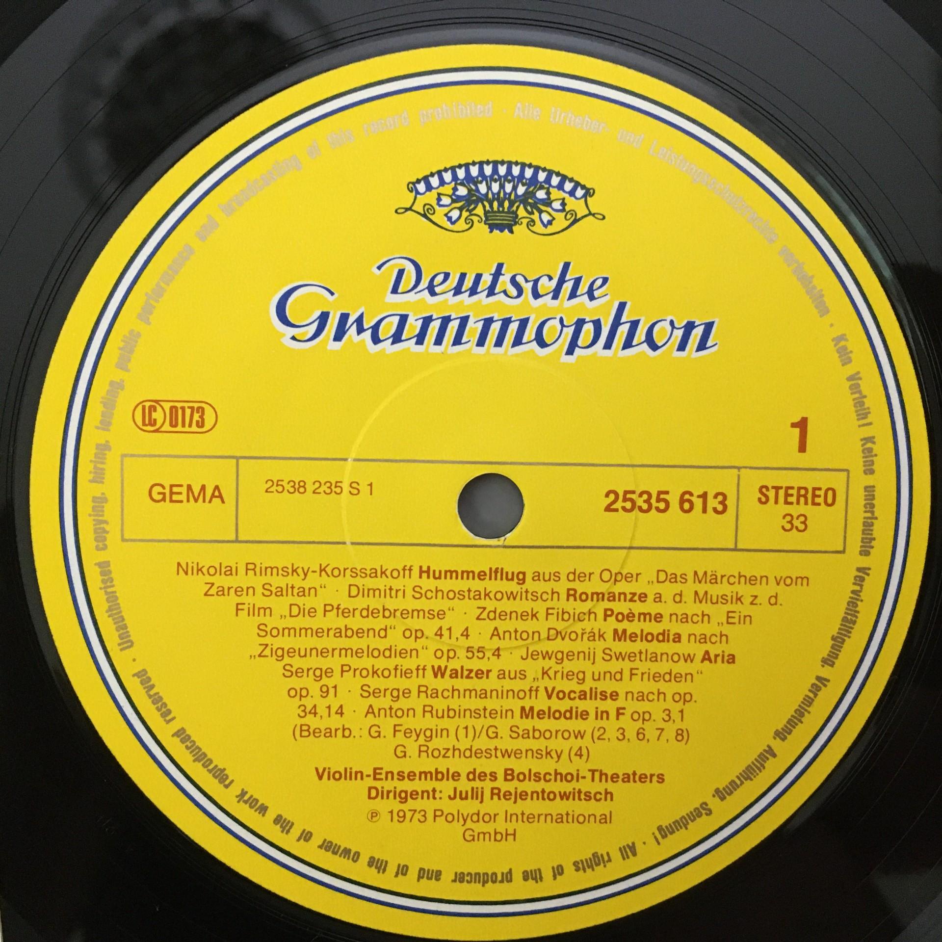M479 Virtuoso Violin Ensemble Bolshoi Rejentovich Hummelflug DGG 2535 613 Stereo