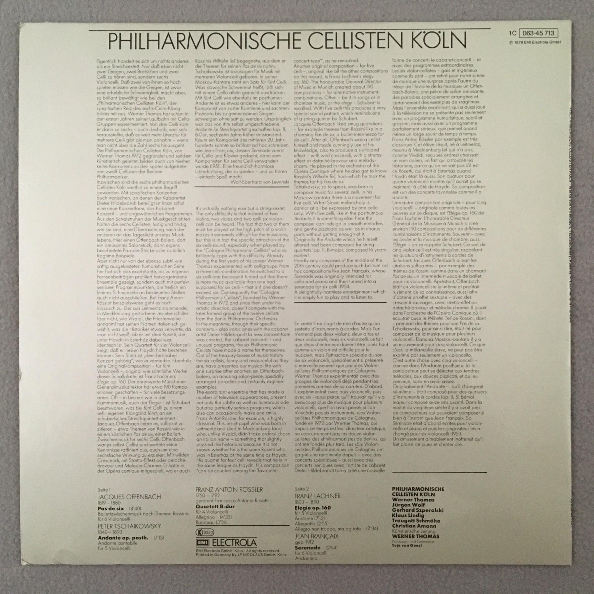 M488 Philharmonic Cellists Köln Offenbach Tchaikovsky EMI 1C 063-45 713 Stereo