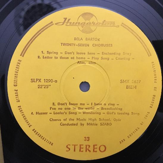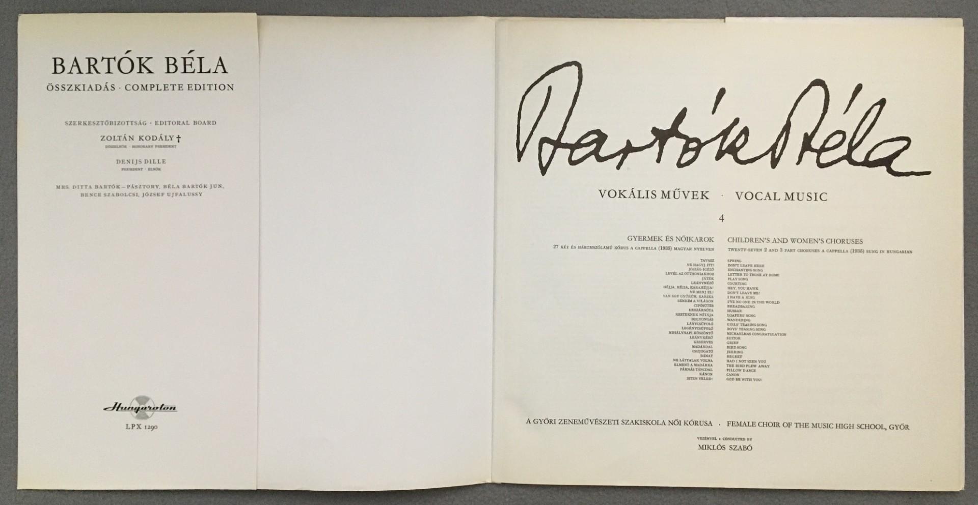 M504 Bartok Vocal Music 2 & 3 Part Choruses Szabo Hungaroton LPX 1290 Stereo