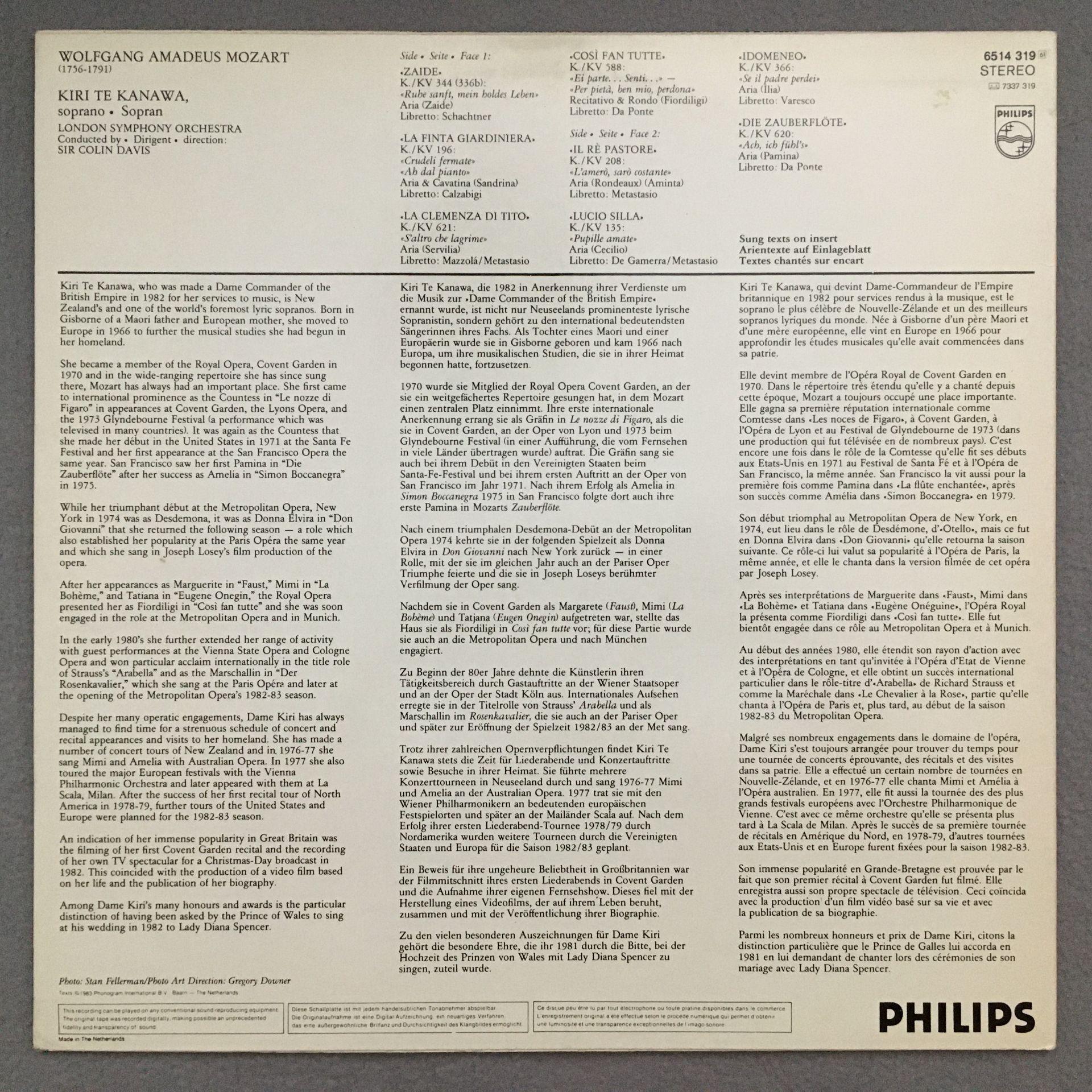 M518 Mozart Opera Arias Kiri Tekanawa Davis LSO Philips 6514 319 Digital Stereo