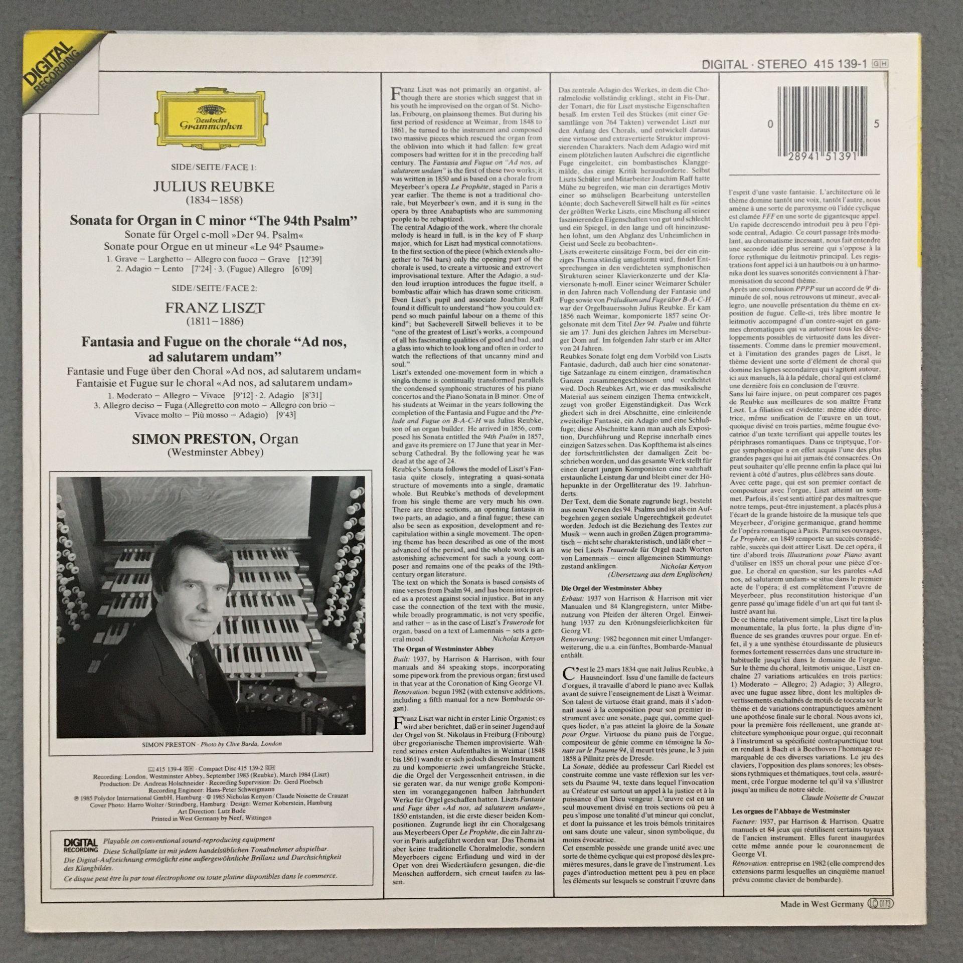 M528 Reubke Organ Sonata Liszt Fantasy & Fugue Preston DGG 415 139-1 Digital St