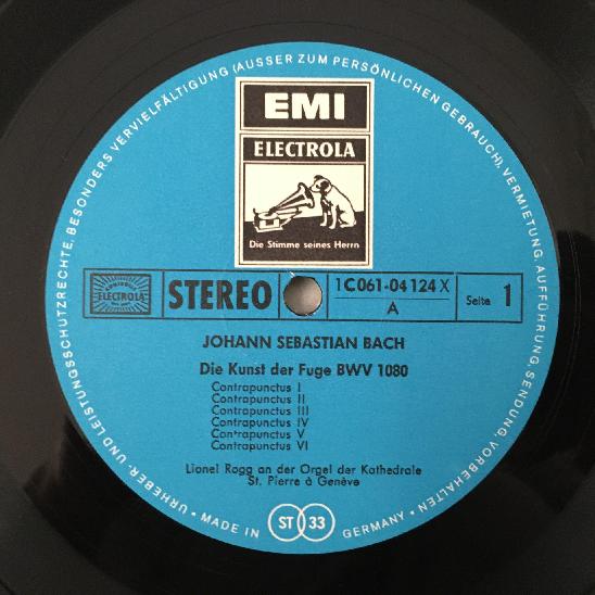 D275 Bach The Art of Fugue Rogg 2LP EMI 1 C 061-04 124/5 X Stereo