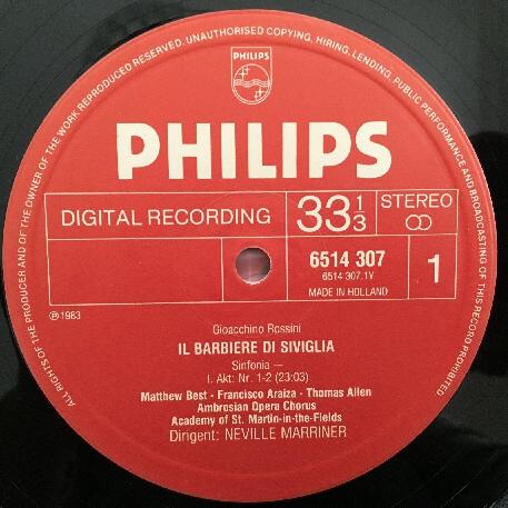 G579 Rossini Barbiere di Siviglia Baltsa Marriner 3LP Philips 6769 100 Digital S