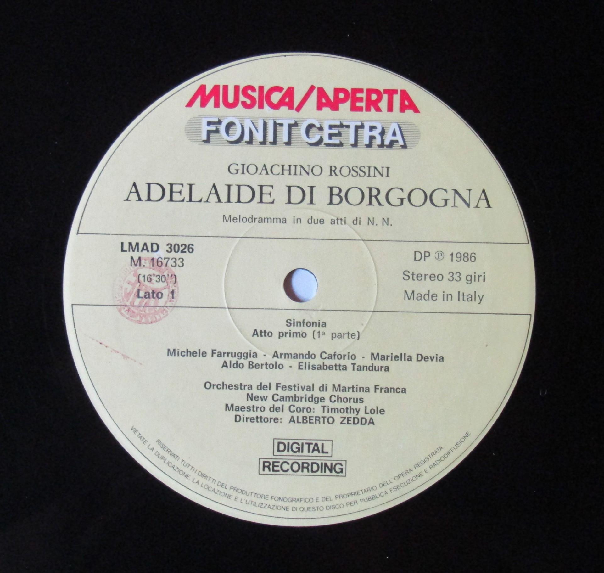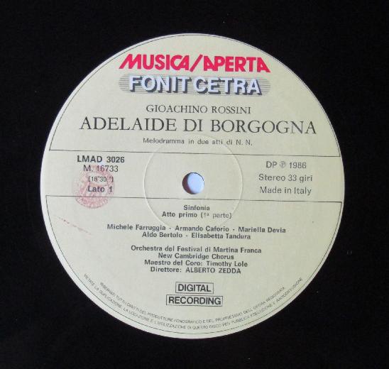 G583 Rossini Adelaide di Borgogna Zedda 3LP Fonit Cetra LMAD 3026 Digital Stereo