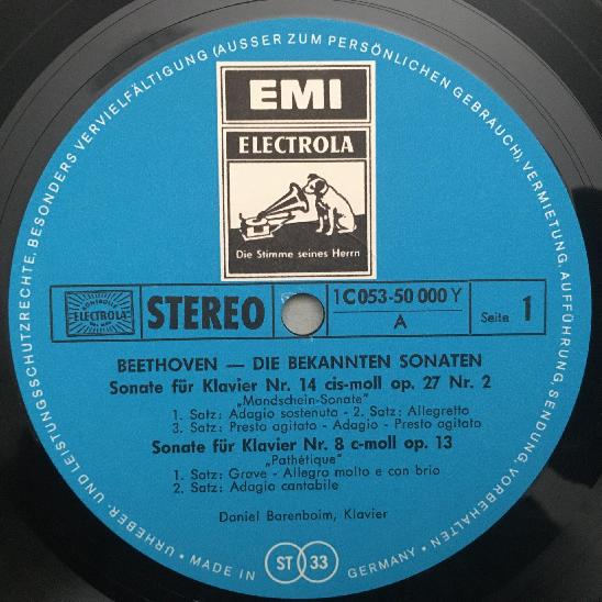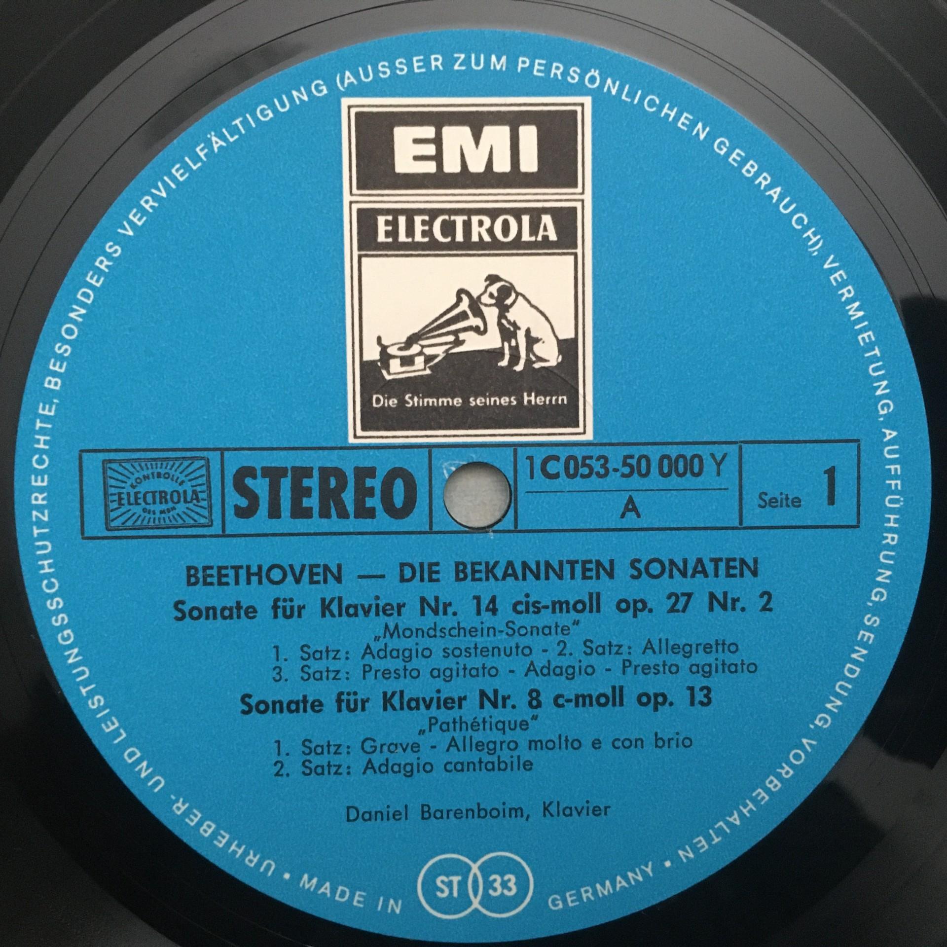 D289 Beethoven The Well Known Sonatas Barenboim 5LP EMI 1C 053-50 000/04 Stereo