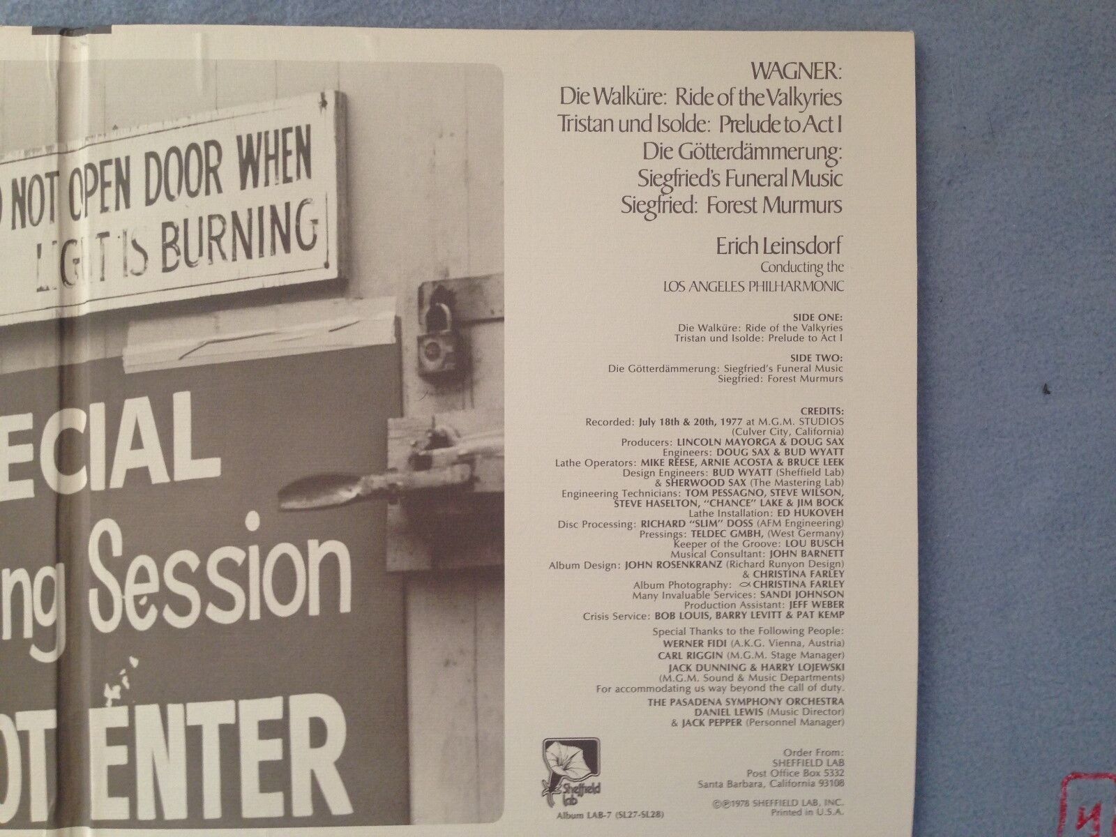 P303 Wagner Valkyrie Siegfried Leinsdorf Sheffield Lab Lab-7 Stereo