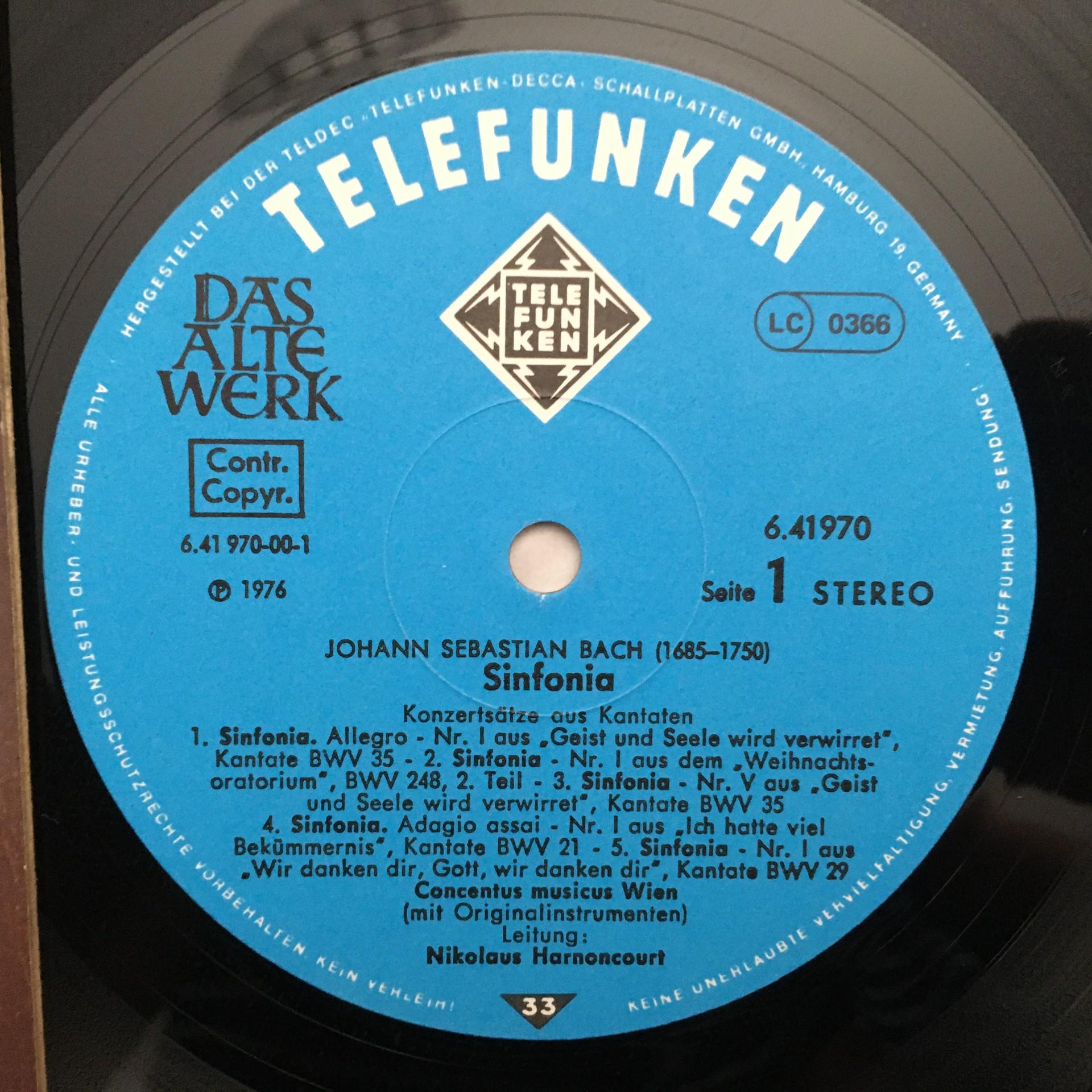 M539 Bach Cantatas Harnoncourt Concentus Musicus Telefunken 6.41970 AH Stereo