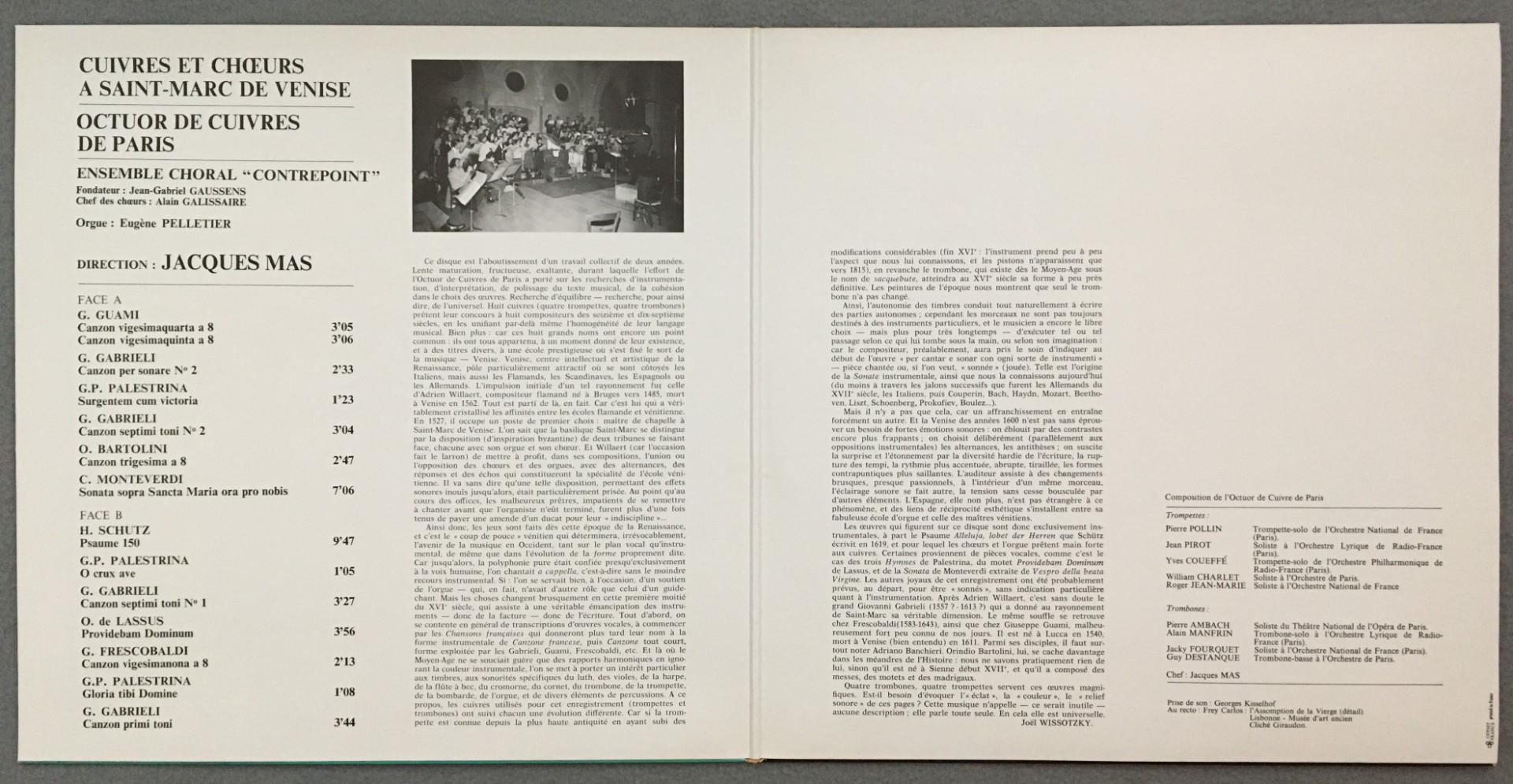 M541 Cuivres & Choeurs a Saint-Marc de Venise Mas RCA FRL 1 0047 Stereo