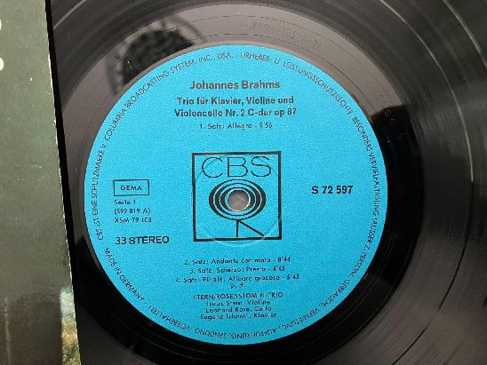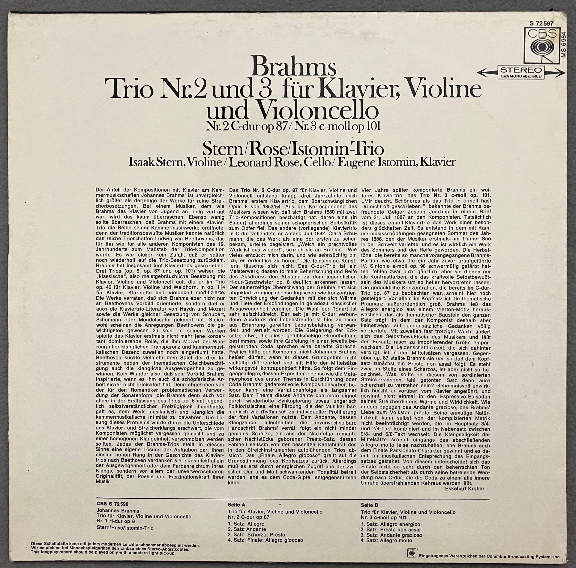 M553 Brahms Trios No.2 & No.3 Stern Rose Istomin Trio CBS S 72 597 Stereo