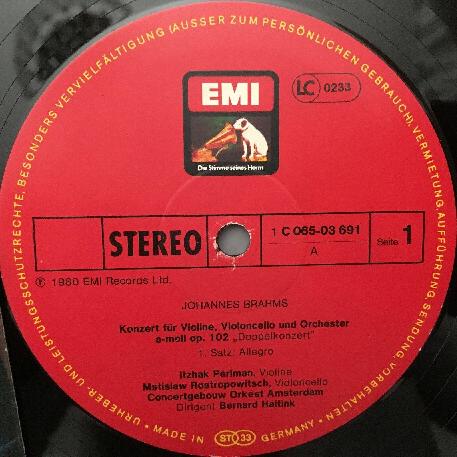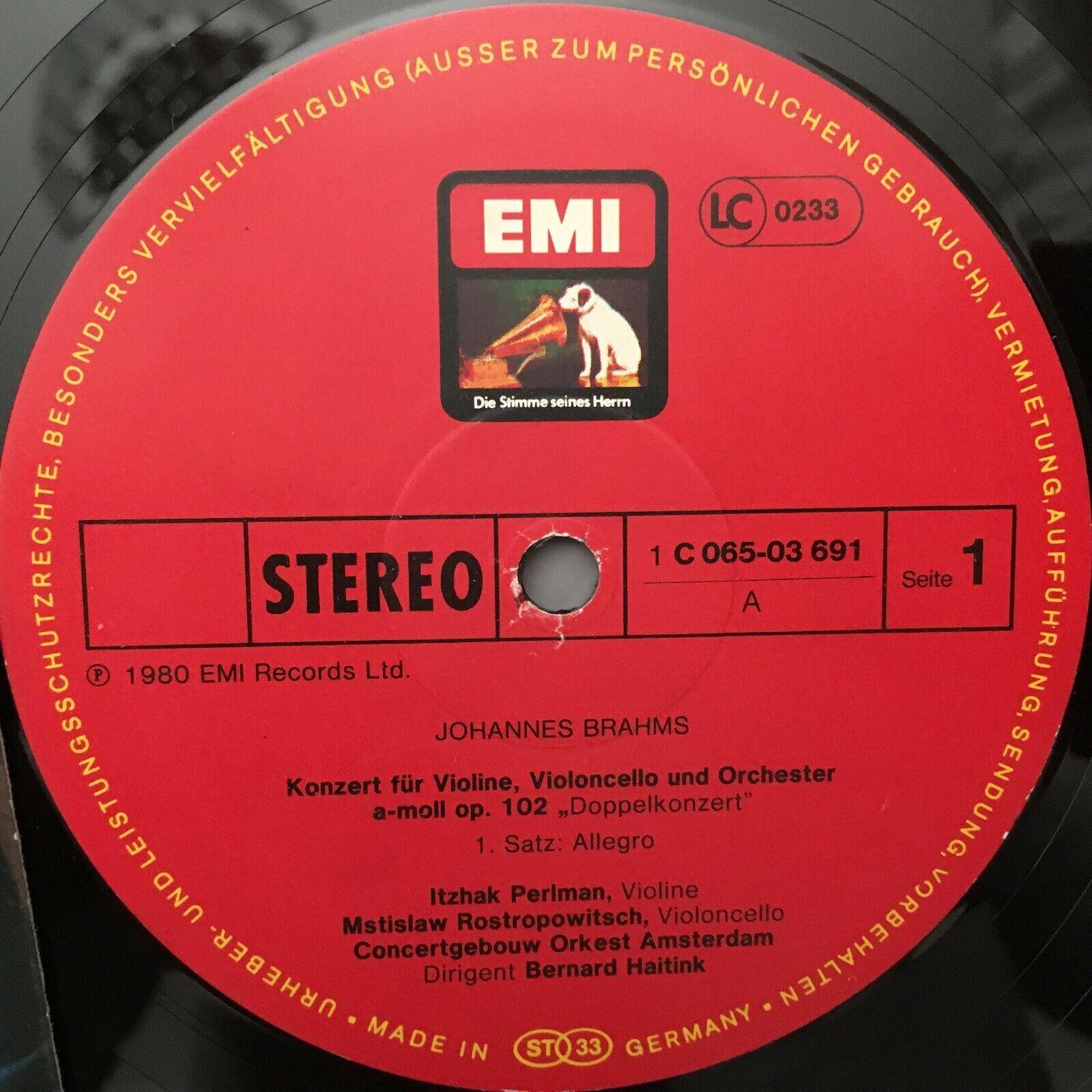 P089 Brahms Double Concerto Perlman Rostropovich Haitink EMI 1C 065-03 691 St