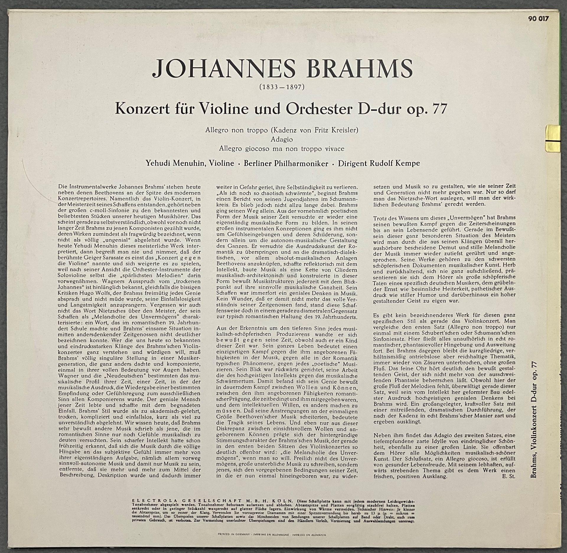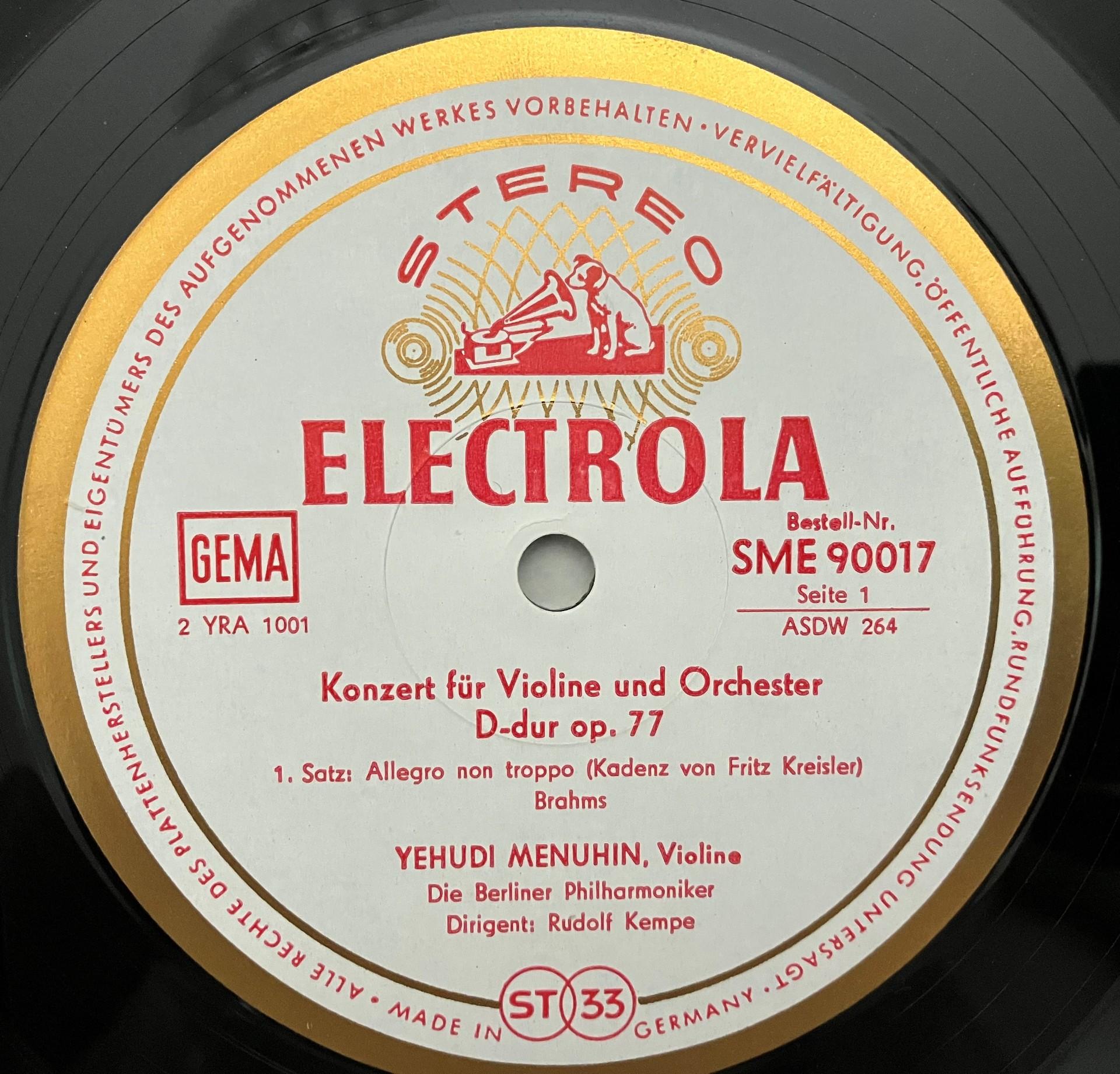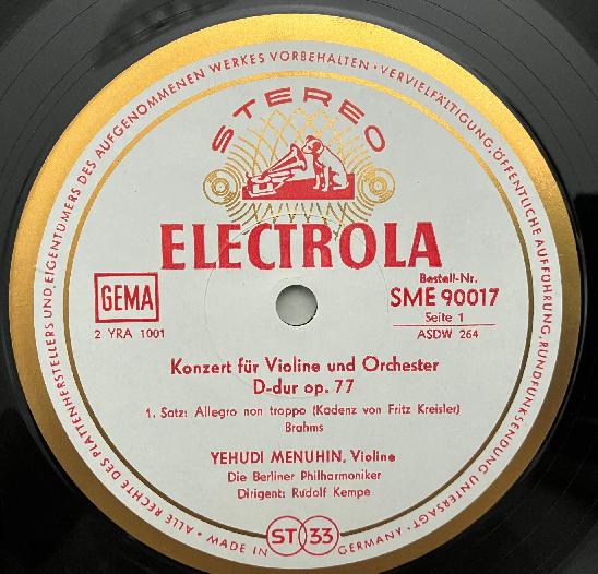 M583 Brahms Violin Concerto Menuhin Kempe Electrola w/g E 90 017 Stereo