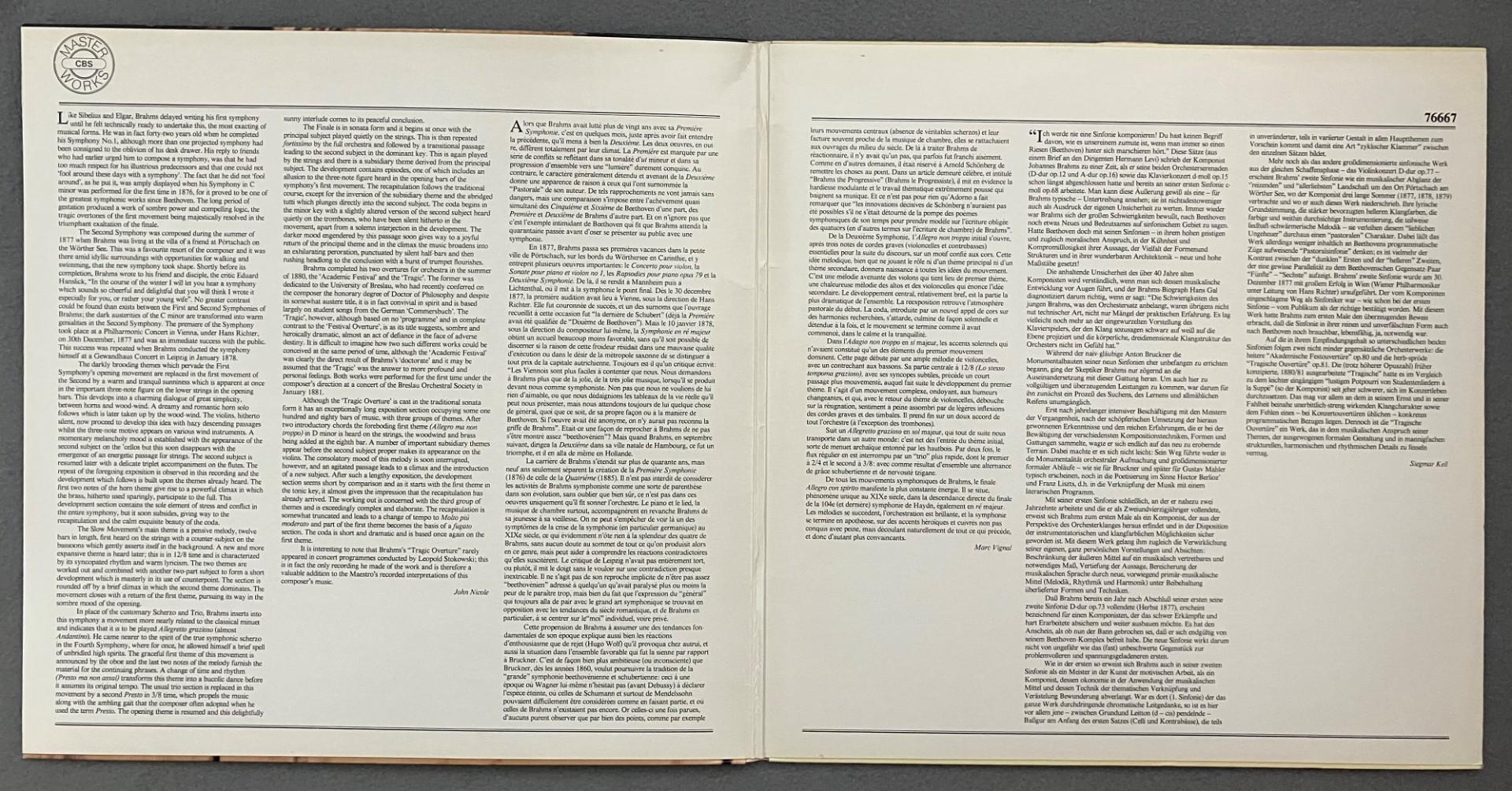 M589 Brahms Symphony No.2 Stokowski CBS Masterworks 76667 Stereo