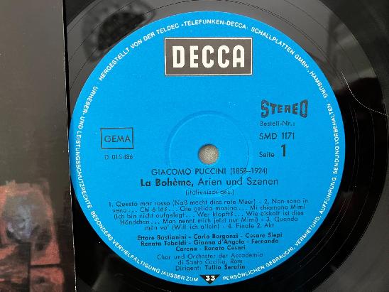 M603 Puccini La Boheme Tebaldi Corena Serafin DECCA SMD 1171 Stereo