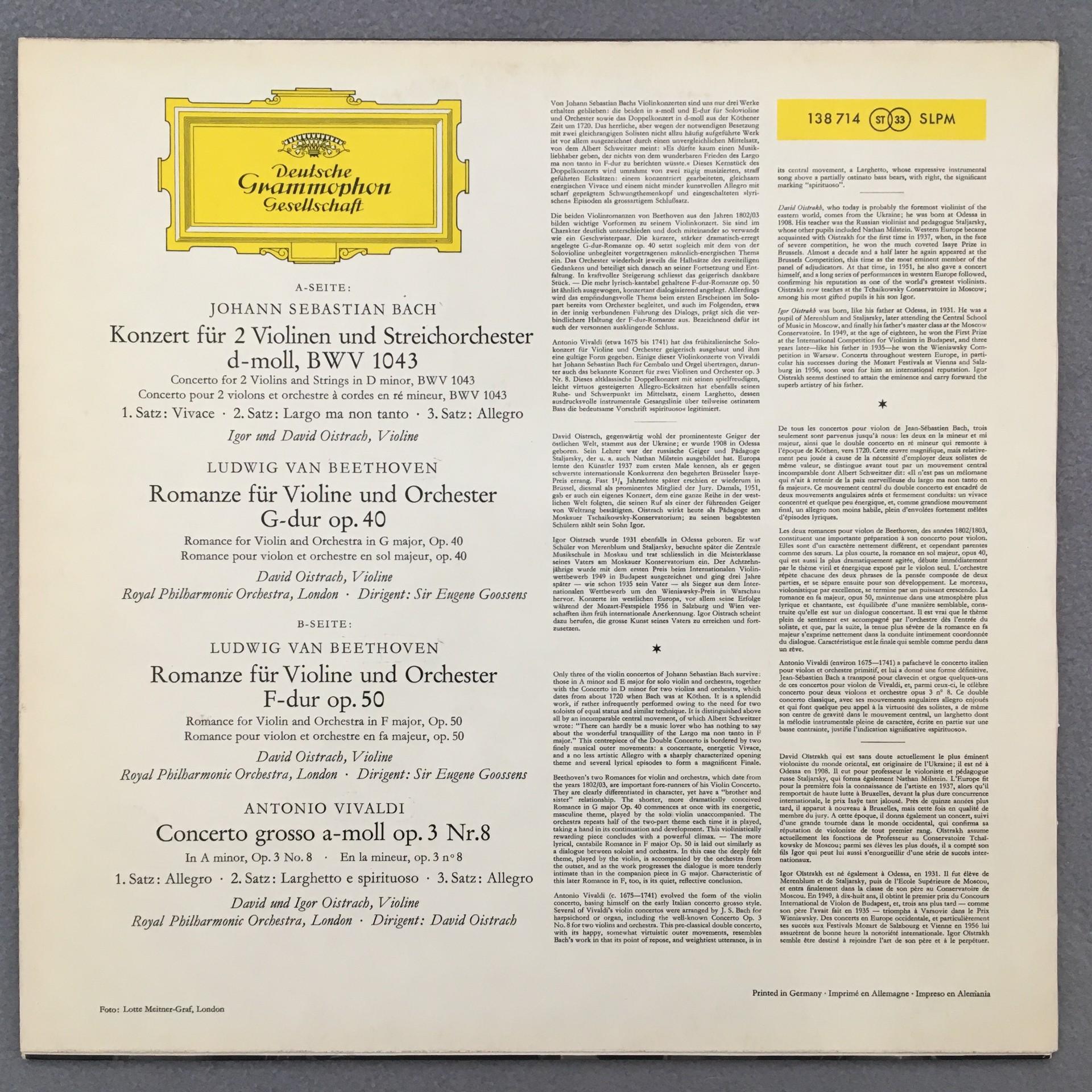 P087 Bach Beethoven Vivaldi D. & I. Oistrakh DGG 138 714 SLPM Stereo