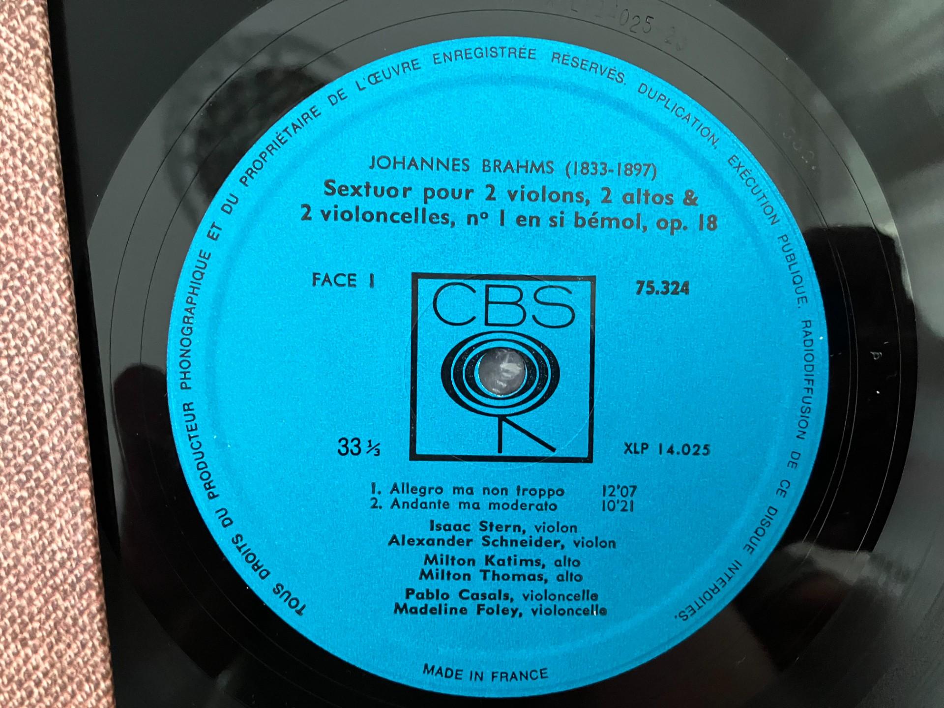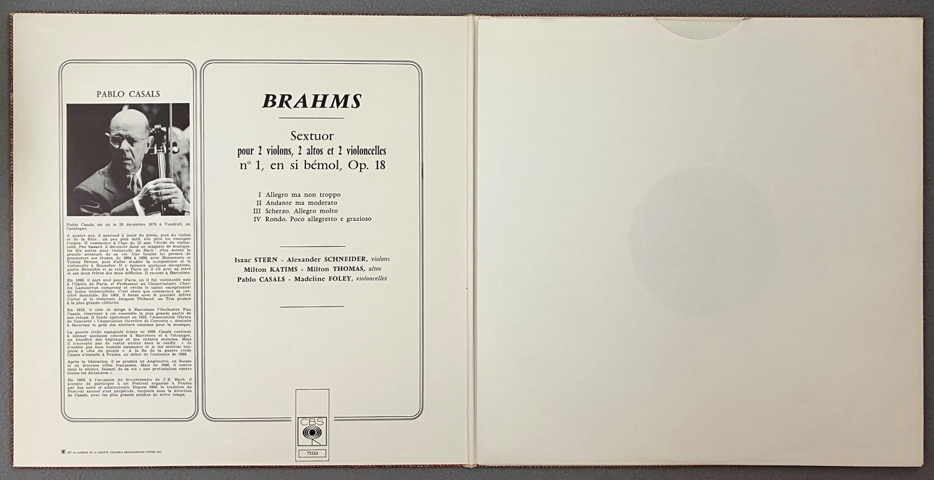 M635 Brahms Sextuor No.1 Stern Schneider Casals Foley Thomas CBS 75324