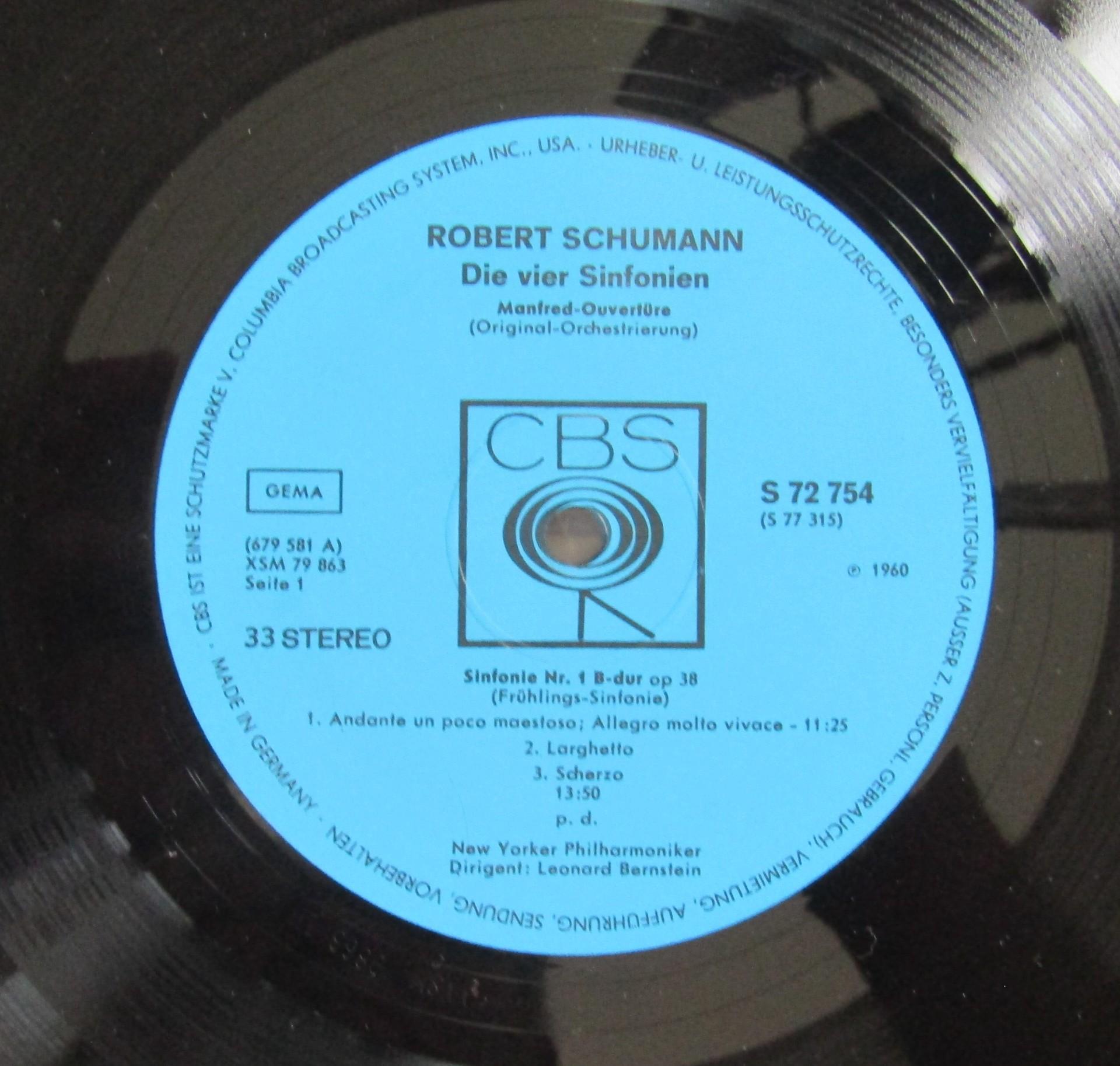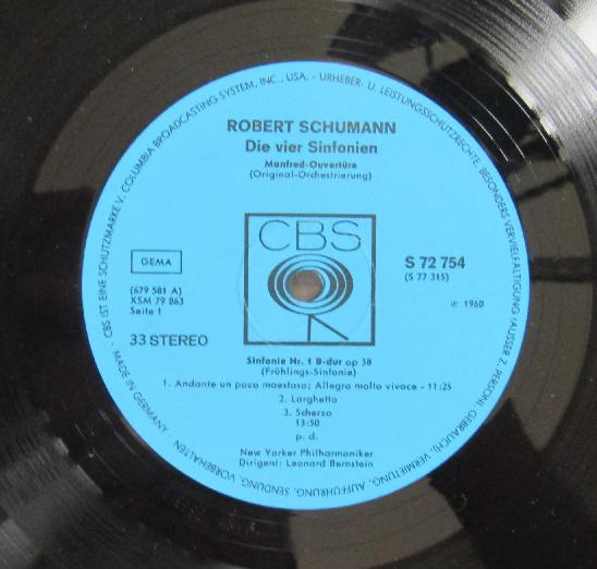 G624 Schumann The 4 Symphonies Overture Bernstein 3LP CBS S 77 315 Stereo