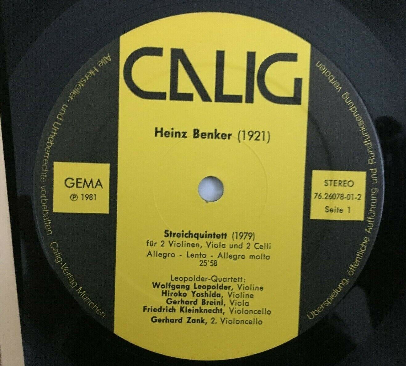 J009 Benker String Quintet Hiroko Yoshida Calig 76.26078-01-2 Stereo SIGNED