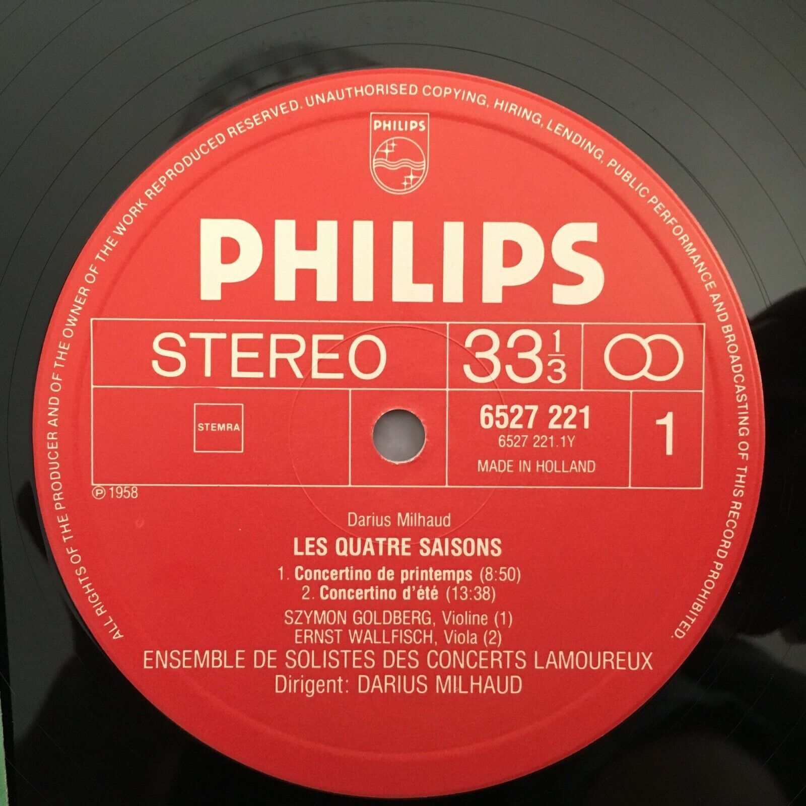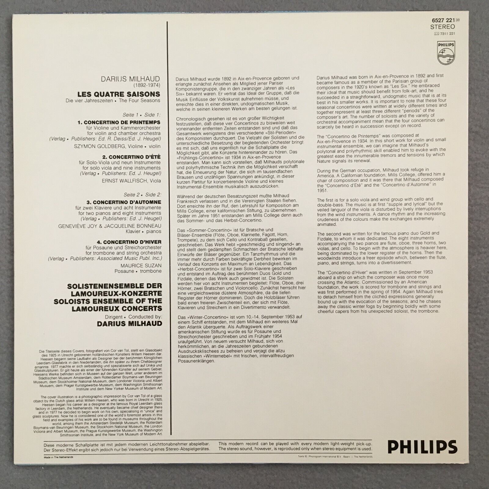 J272 Milhaud The 4 Seasons Solists of Lamoureux Milhaus Philips 6527 221 Stereo