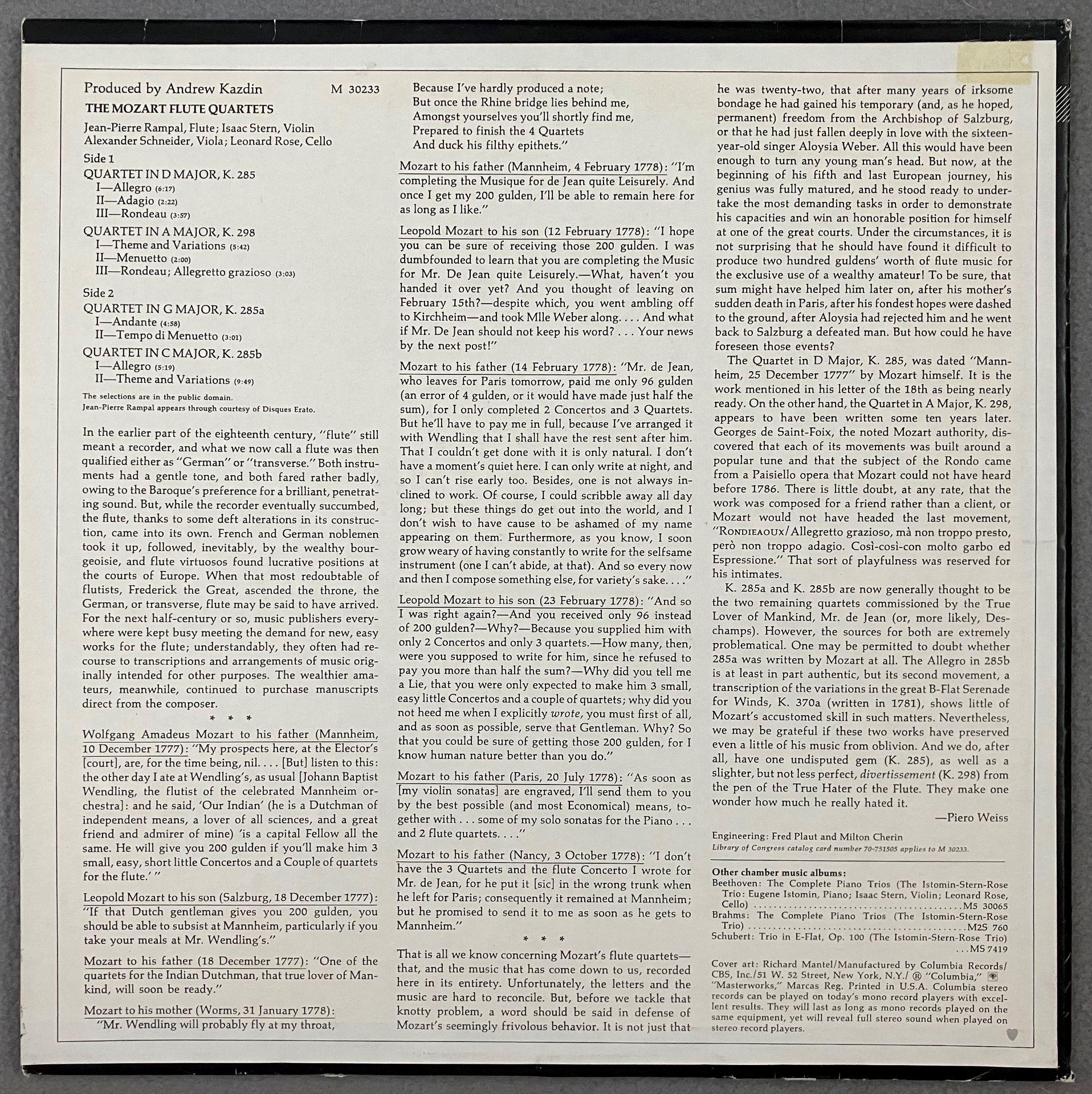 M651 Mozart The Flute Quartets Stern Rose Schneider Rampal Columbia M 30233