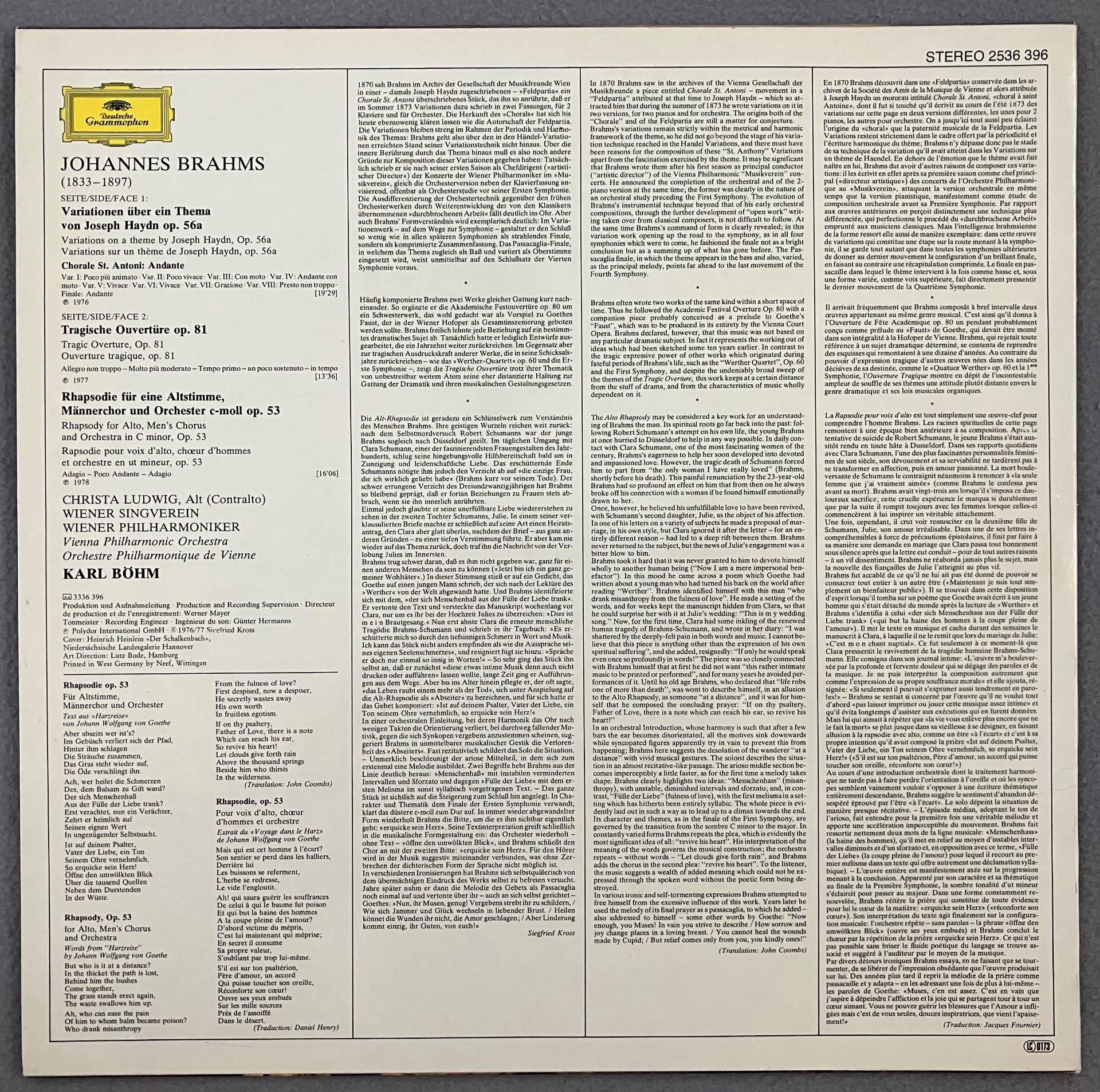 M653 Brahms Haydn Variations Ludwig Bohm VPO DGG 2536 396 Stereo