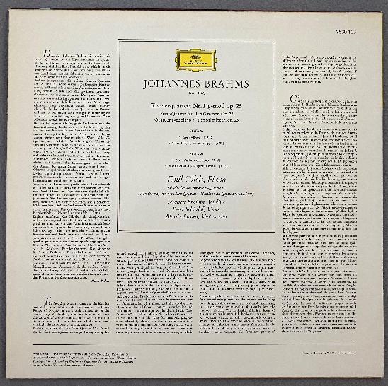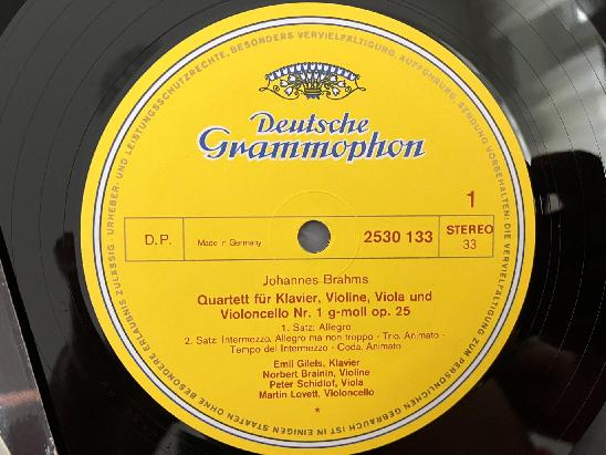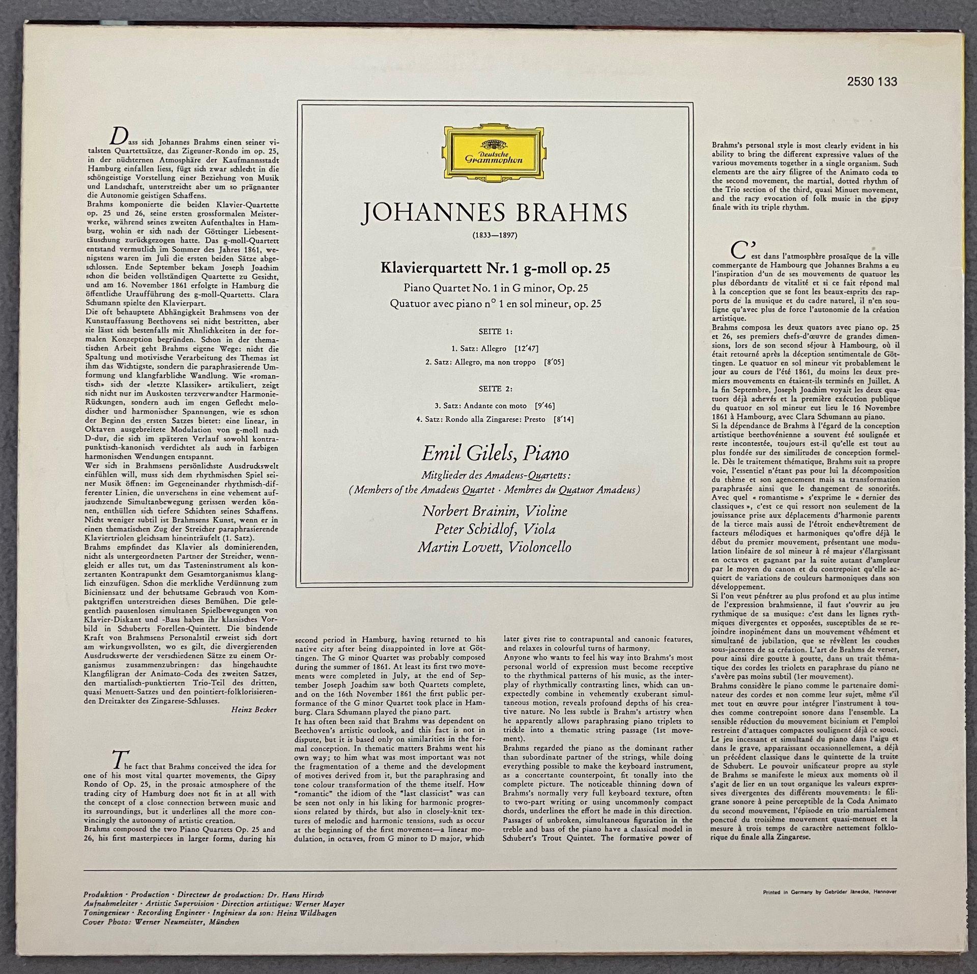 M654 Brahms Piano Quartet Gilels Members of Amadeus Quartet DGG 2530 133 Stereo