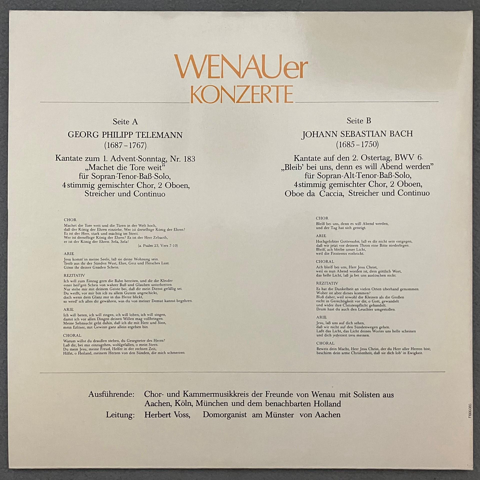 M660 Telemann Bach Cantatas Wenau Concertos Voss Private F666085 Stereo